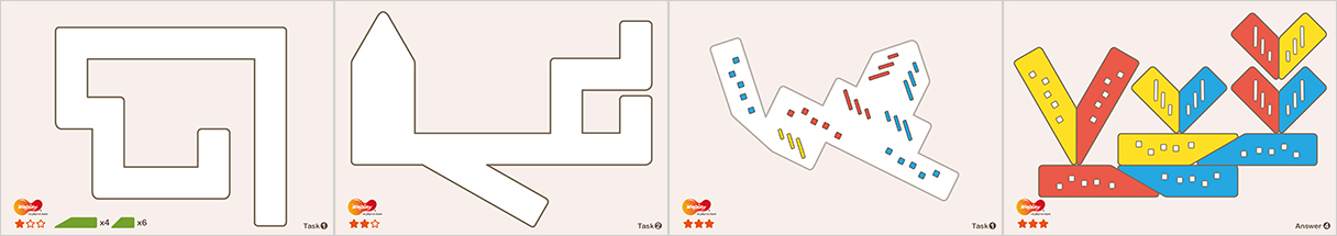 3. 附6張雙面圖卡,依照圖卡完成仿作或回答角度、序列問題,提升觀察與問題解決能力。