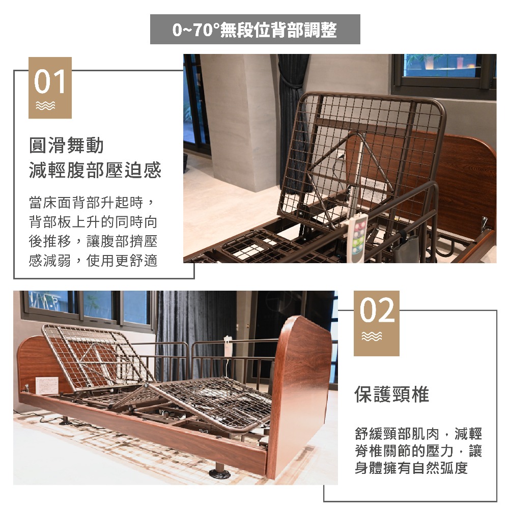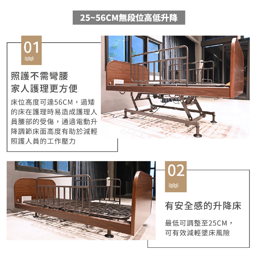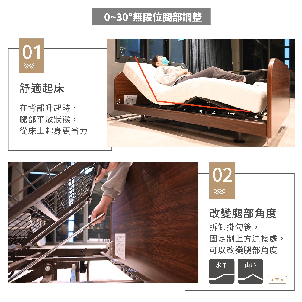 1. 此產品符合長照2.0/身心障礙者輔具補助項目【居家用照顧床-附加功能A款(床面升降功能)+附加功能B款(電動升降功能)】