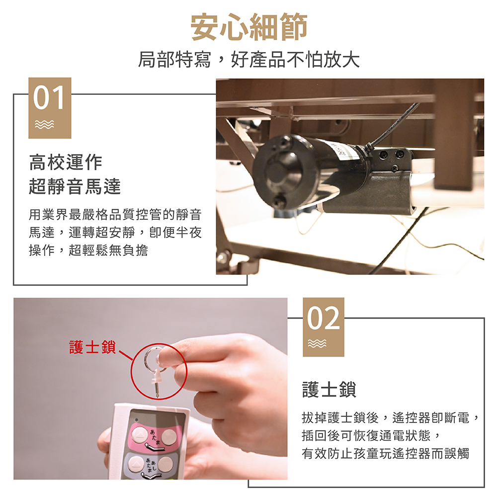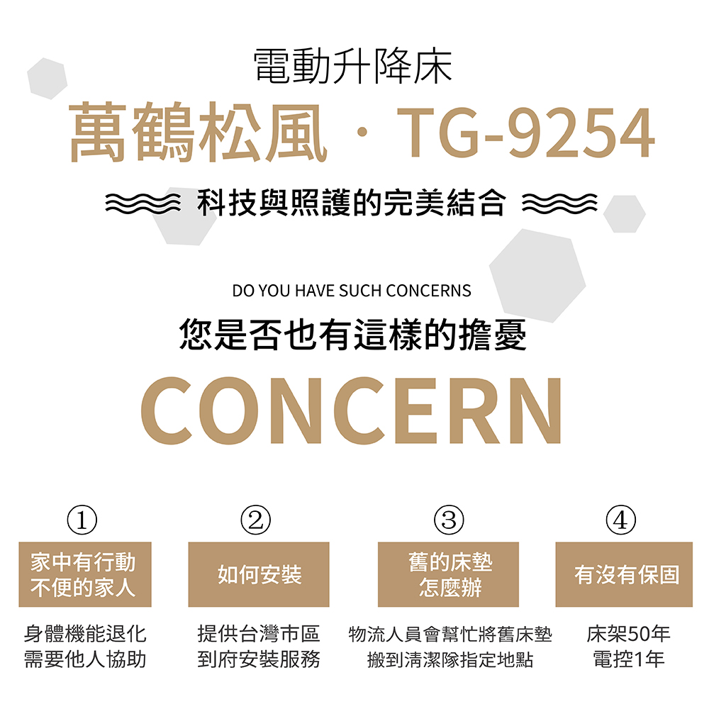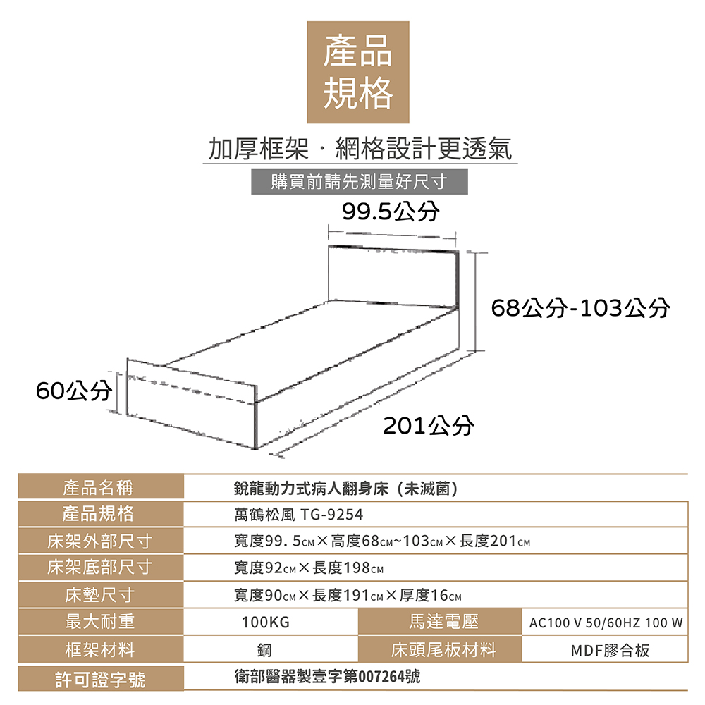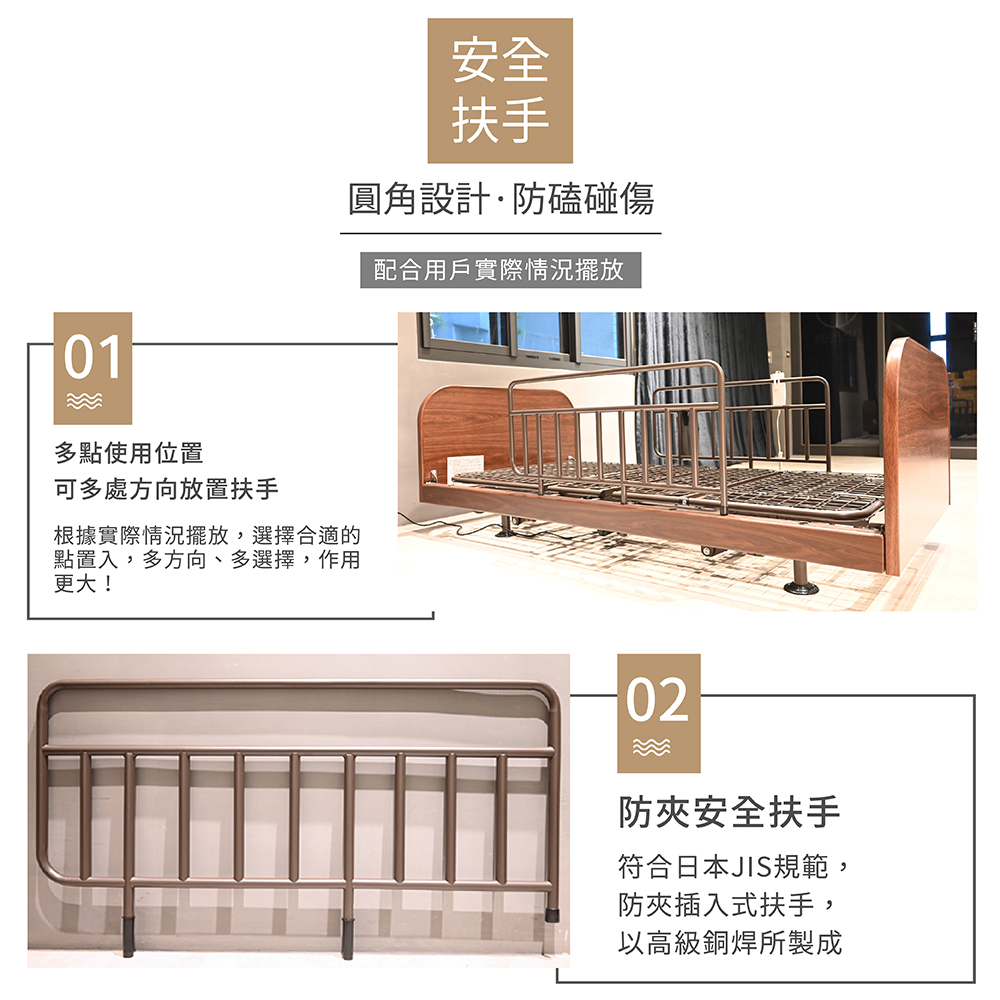 1. 此產品符合長照2.0/身心障礙者輔具補助項目【居家用照顧床-附加功能A款(床面升降功能)+附加功能B款(電動升降功能)】