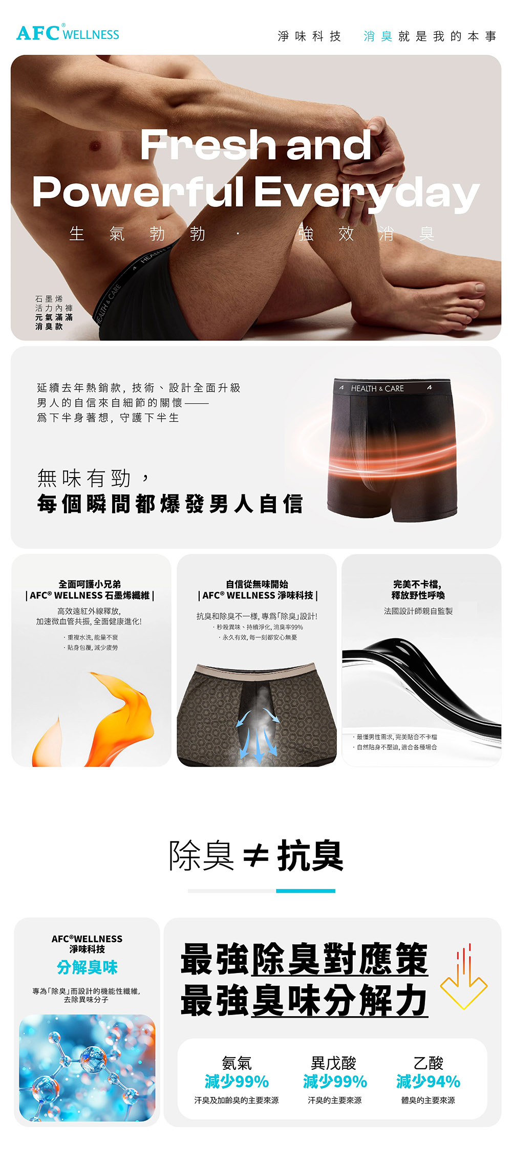 •Confidence starts with odor-free|AFC® WELLNESS Deodorizing Technology|