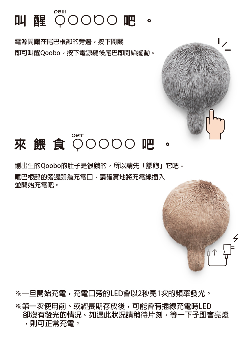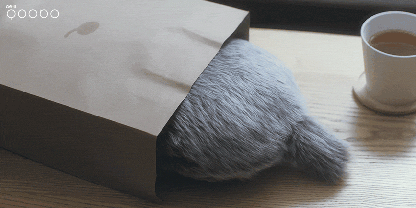 You can imagine Petit Qoobo as a cat, a dog, or a small furry creature with a plush tail.