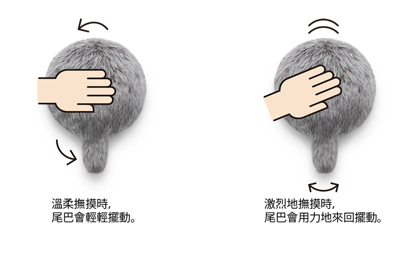 - ★ The responsive mechanism varies tail movements according to the strength of your touch.