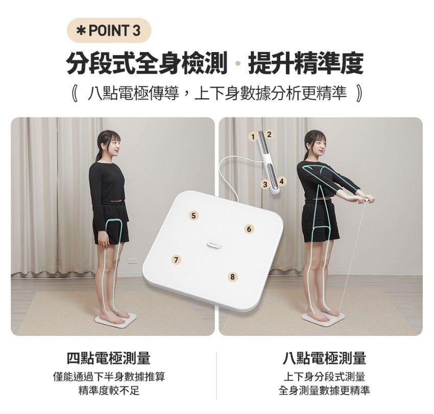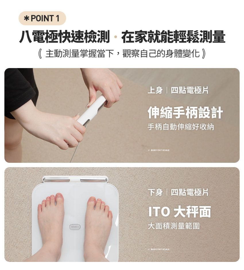 測量時,請避免手腳太乾燥,且勿穿著襪子,需光腳進行測量。