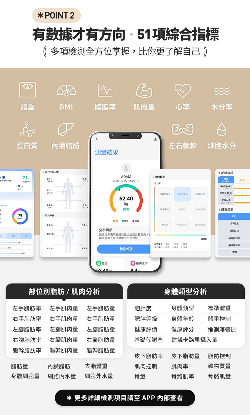 2. 51 項綜合指標檢測,提供數據解釋及專屬建議