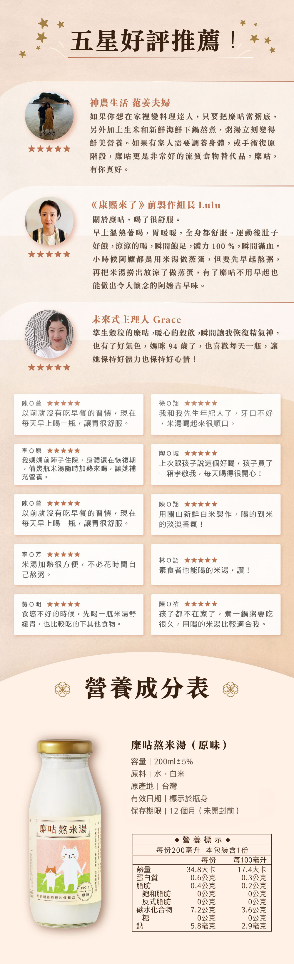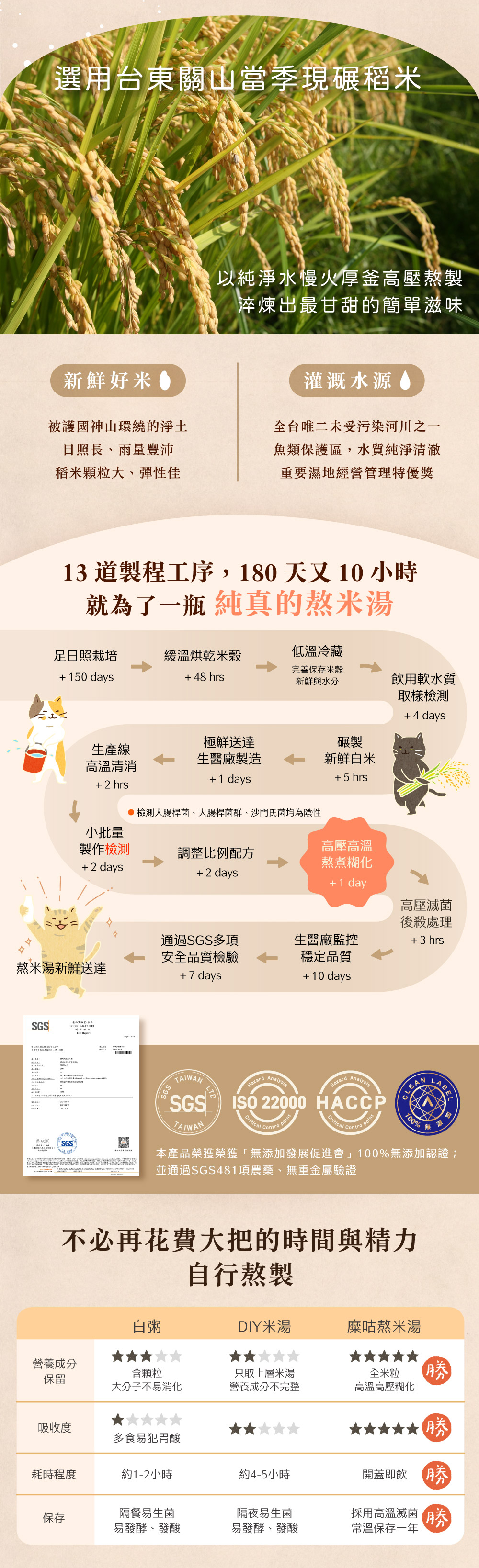 2. - Simple Formula:Packed with the purest ingredients—white rice, water, and almonds. The premium rice is sourced from Taitung's Guanshan, nourished by unpolluted water; the almonds have passed food safety verification.
