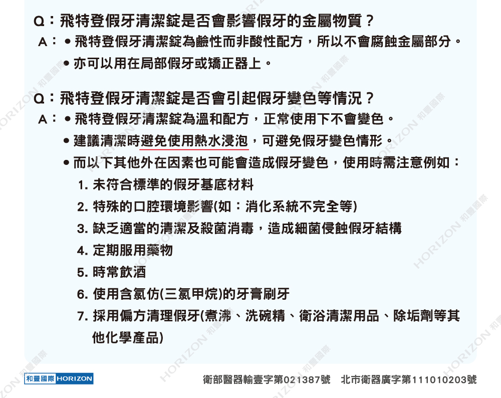 1. Chinese Product Name: “飛特登”假牙黏著劑 (未滅菌)