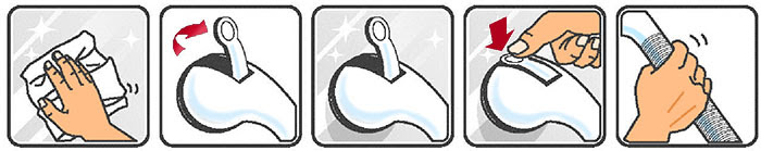Quick and easy installation in either horizontal or vertical orientation on any smooth surface without the need for tools.