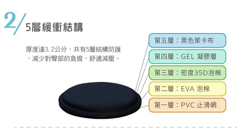 4. Materials: PVC anti-slip mesh, EVA foam, 35D density foam, GEL, Lycra fabric