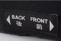 The labels indicating front and back are prominently placed to ensure correct placement of the cushion.