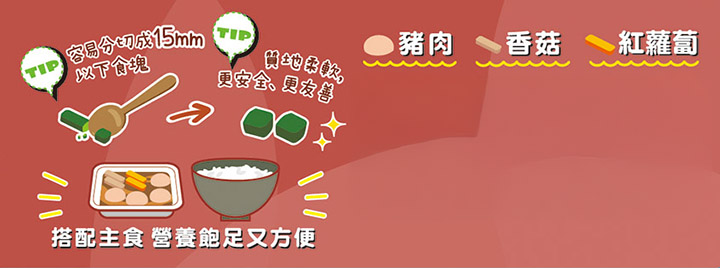 不僅方便進食,更有多種菜色可供挑選,讓長輩更願意上餐桌跟家人一起用餐。