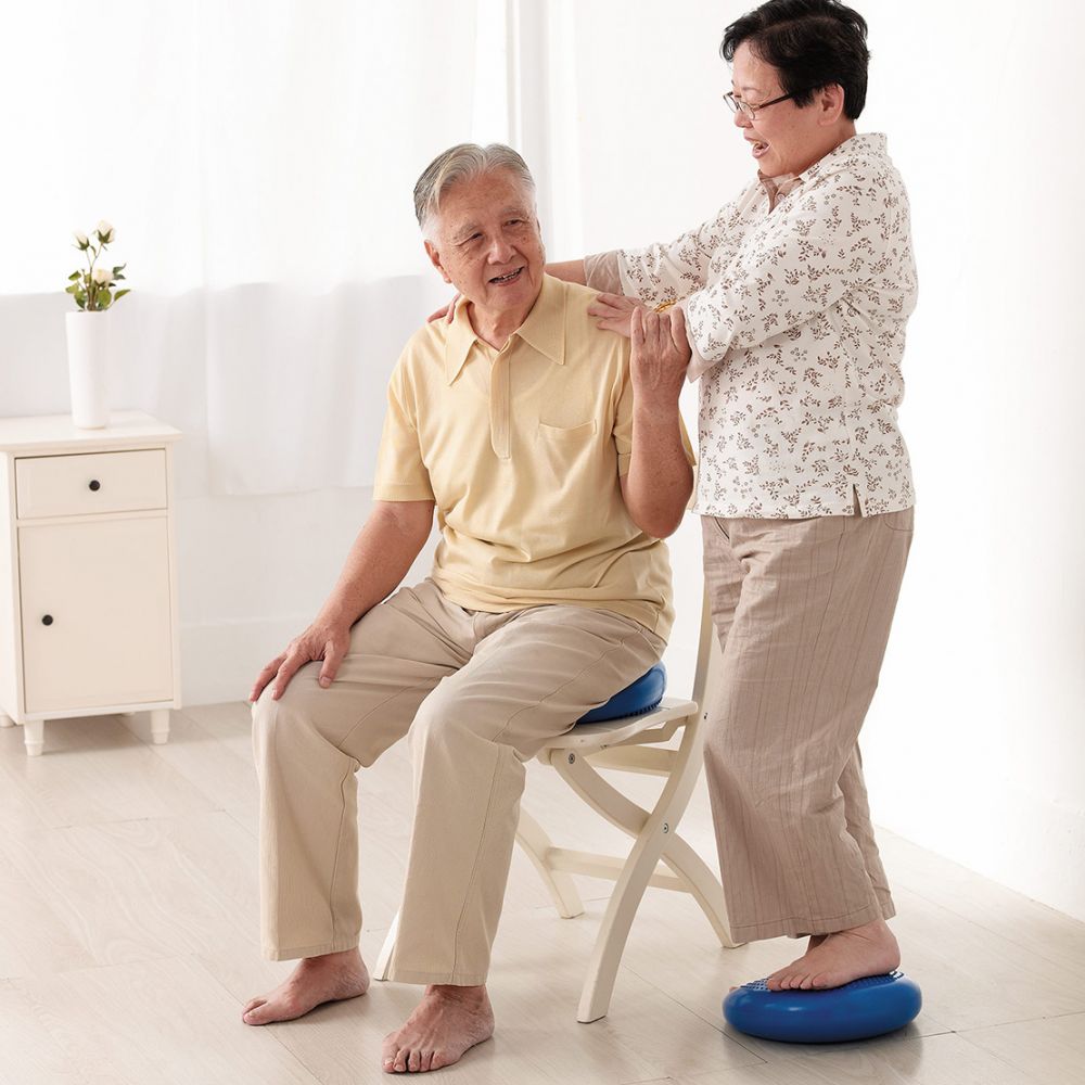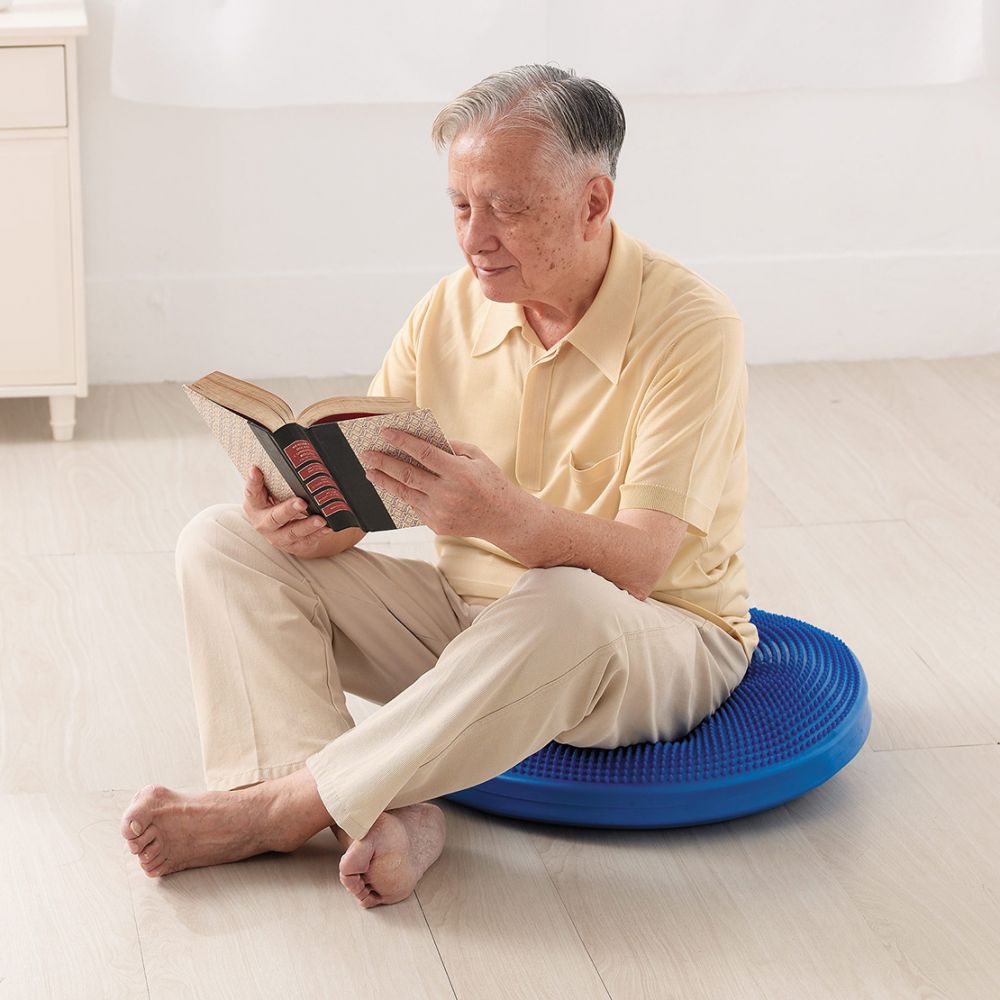 1. 可當成坐墊、背靠或腳踏墊等…多種用途;可坐可站,協助保持身體平衡,藉以端正姿勢。