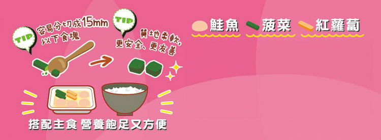 1. (1) 個人情況不同,如有需要,飲食中請照顧者在旁陪伴避免嗆咳窒息的情況發生。