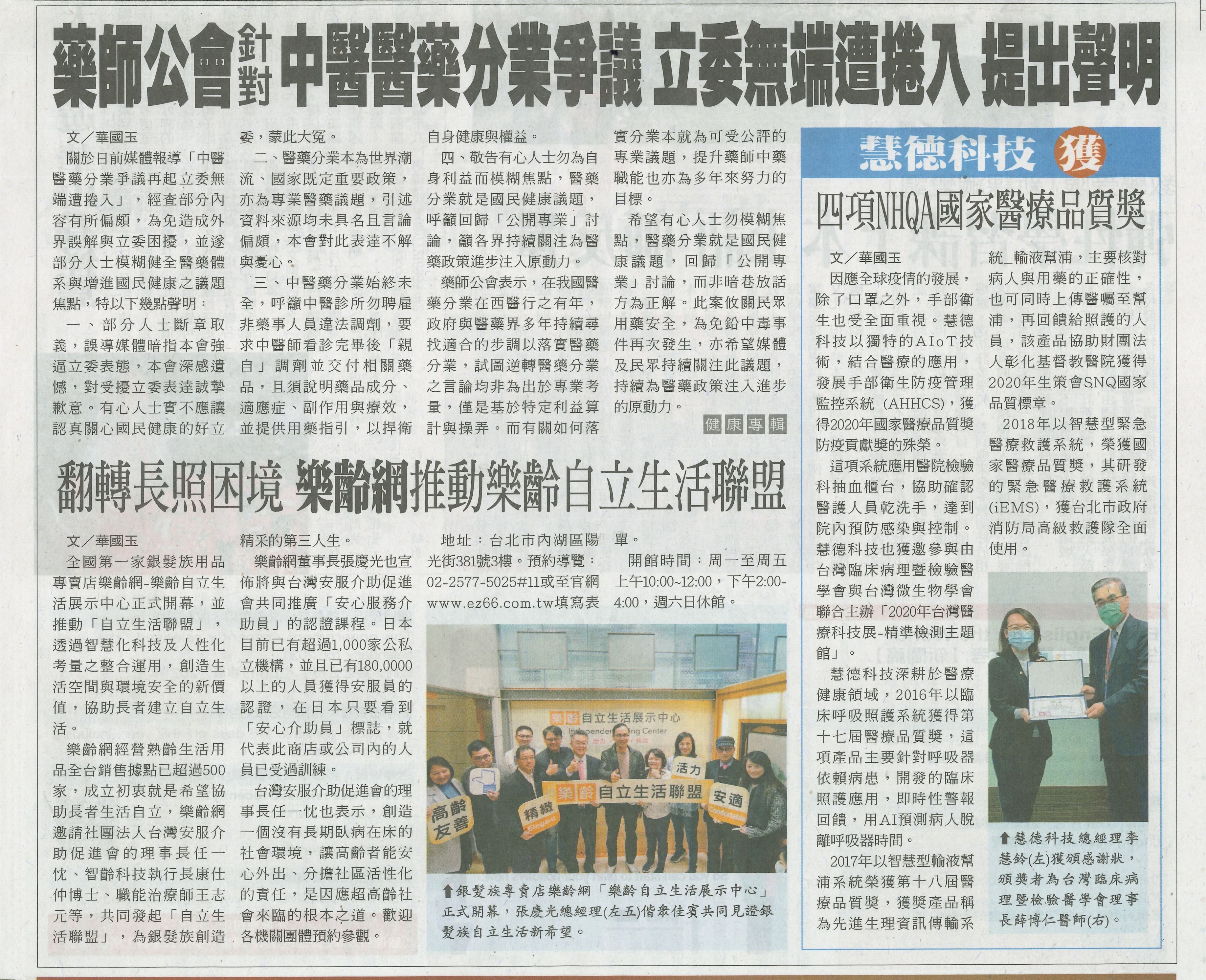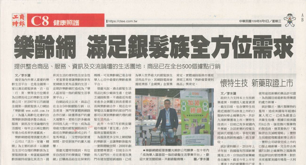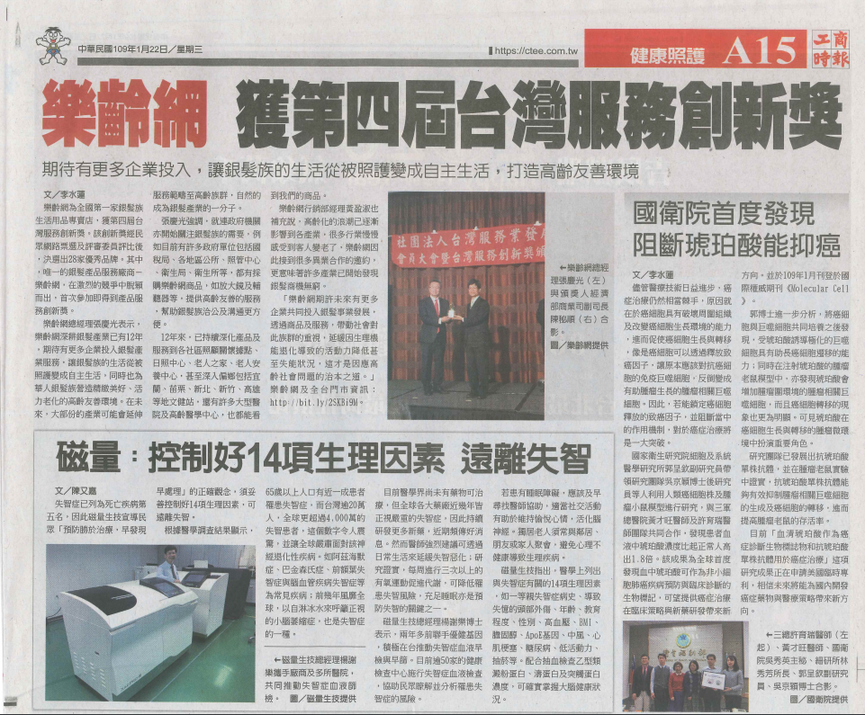 【報紙】工商時報(2020/1/22) 刊登『樂齡網 獲第四屆台灣服務創新獎』看更多...