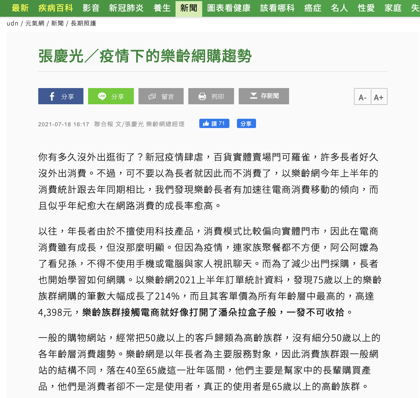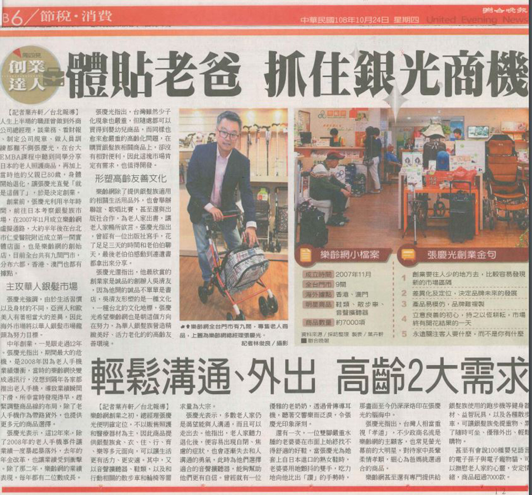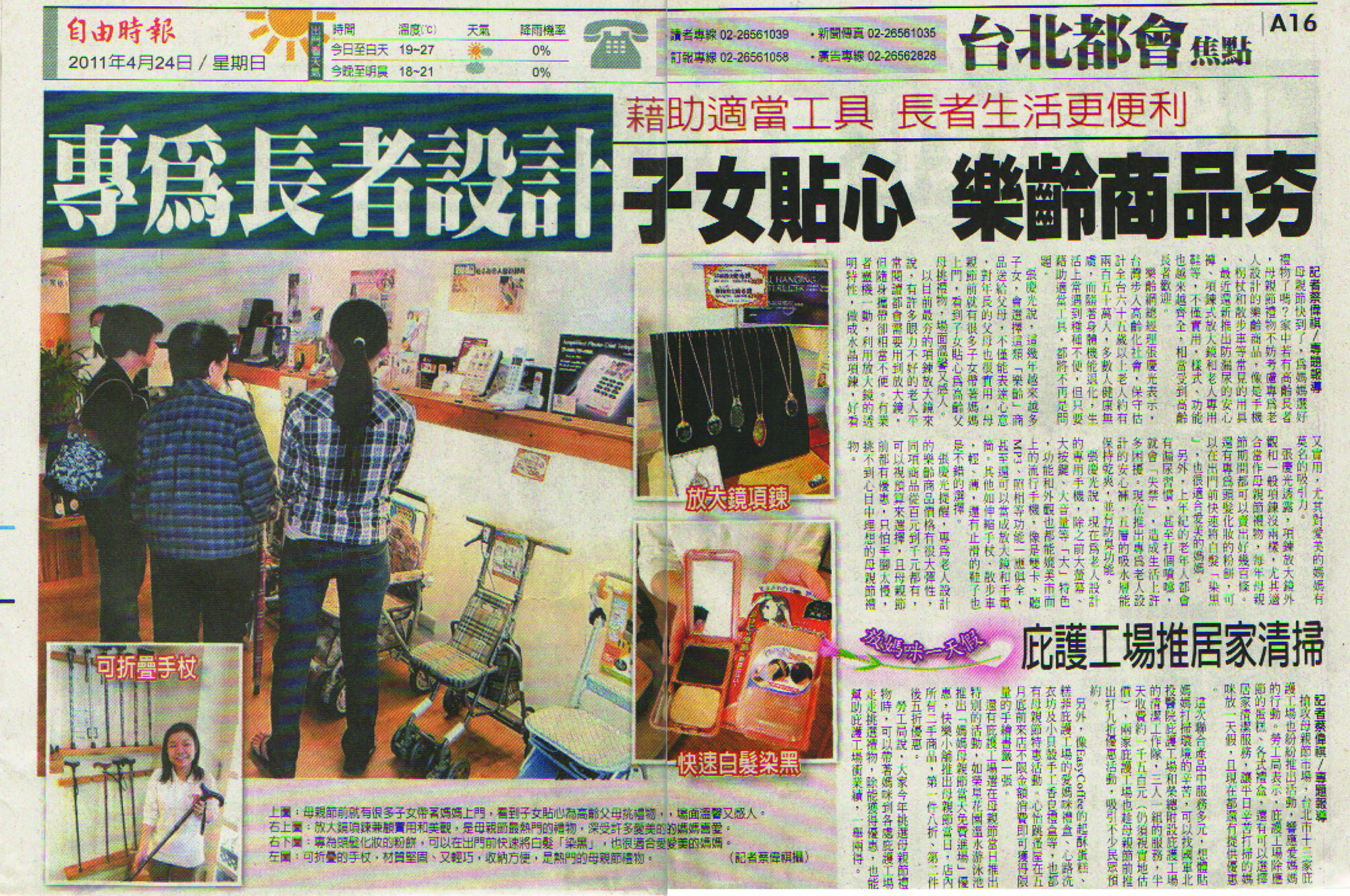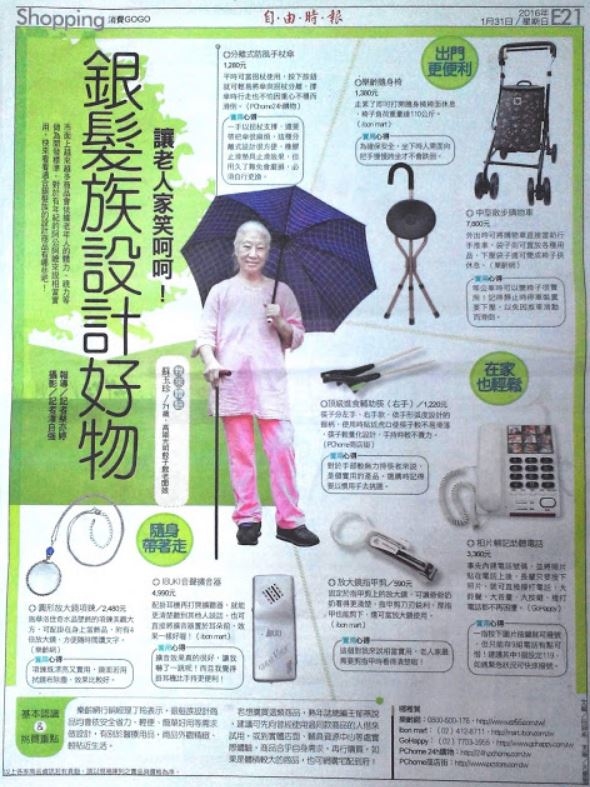 【報紙】自由時報 2016/2/1銀髮族設計好物,讓老人家笑呵呵。刊登樂齡網商品