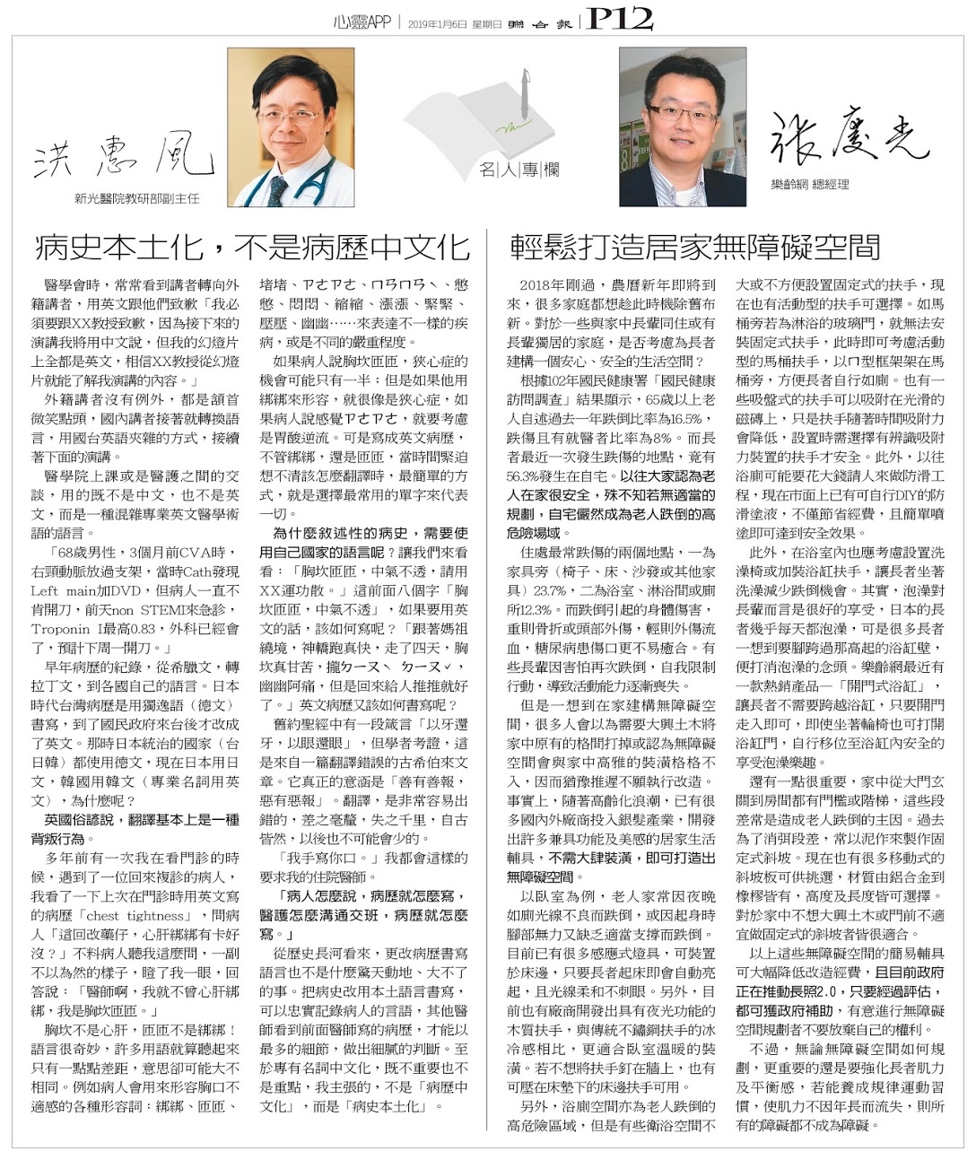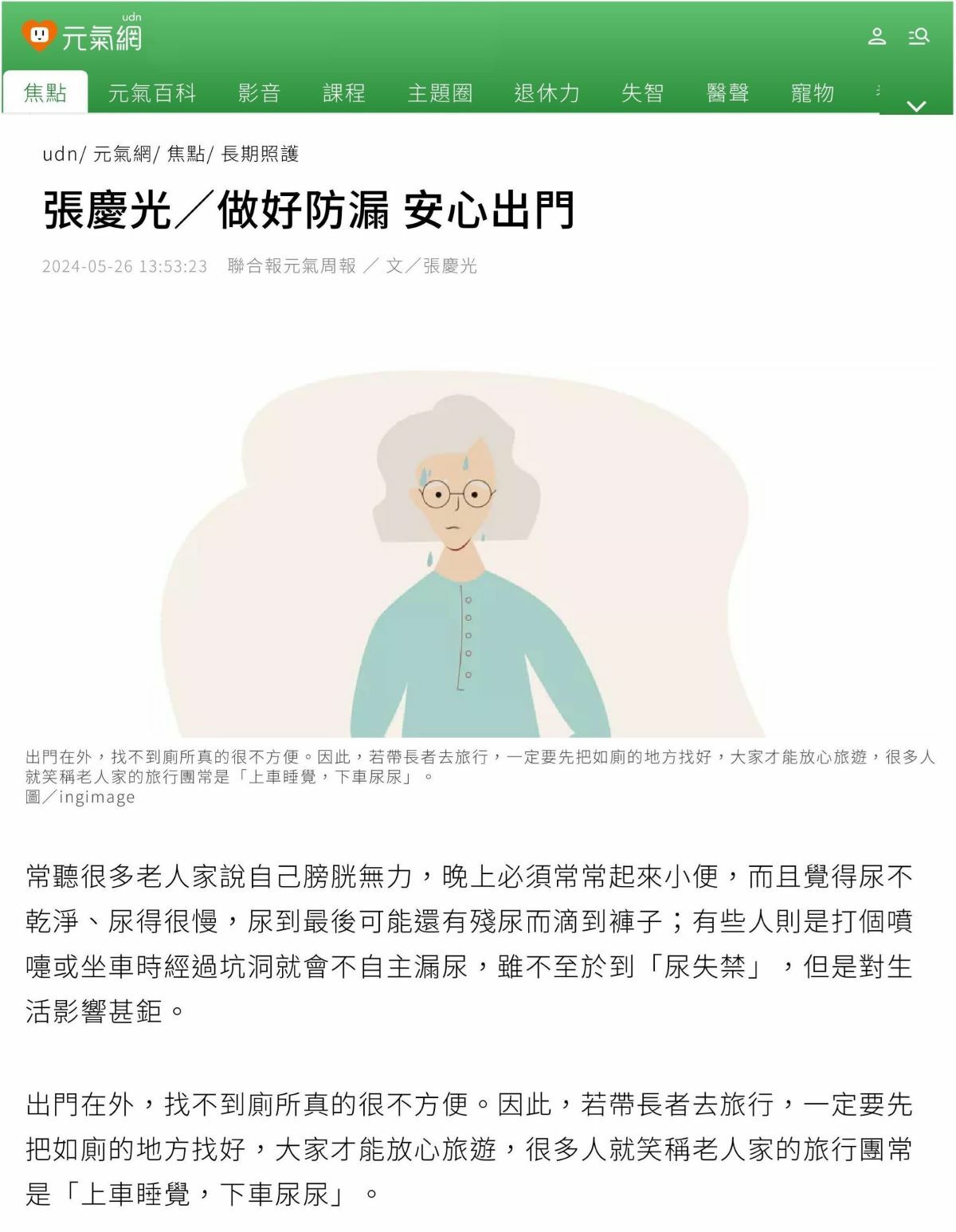 【網路】udn 元氣網 (2021/05/30) 刊登『善用居家輔具 度過照護空窗期』。看更多…