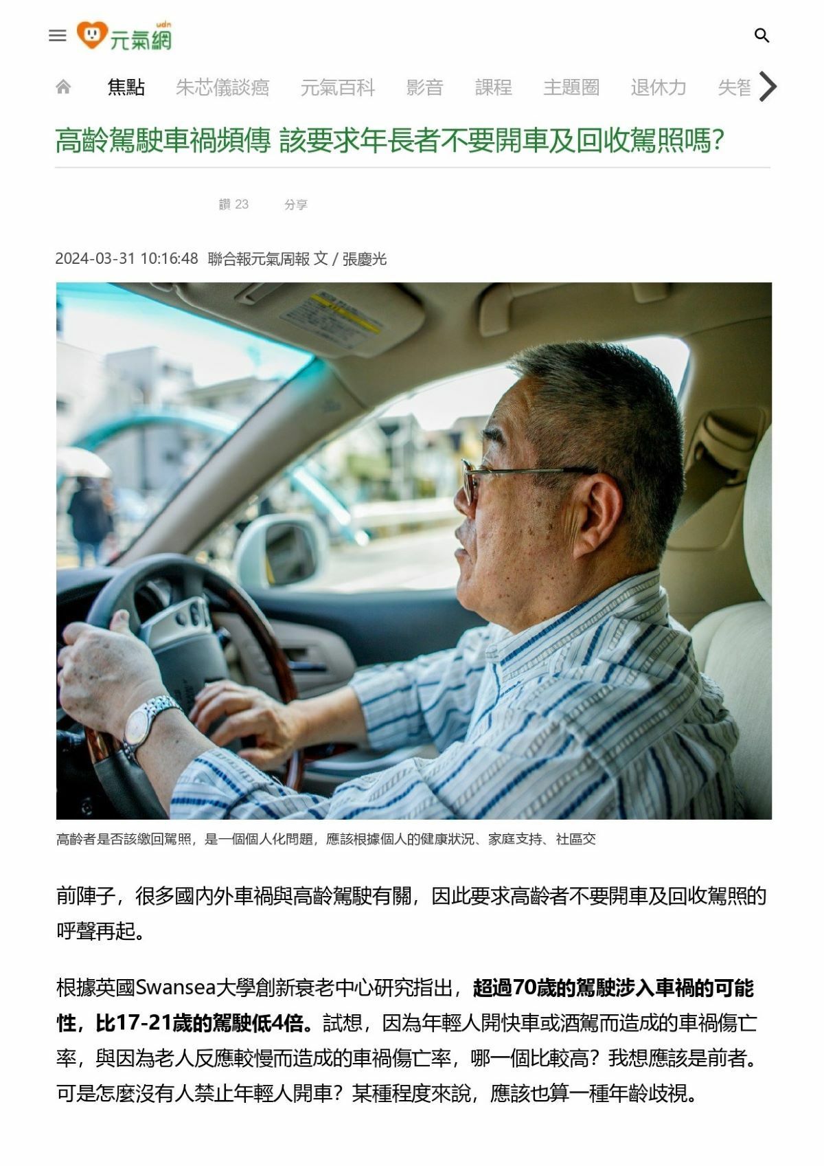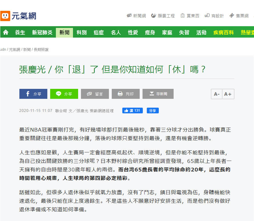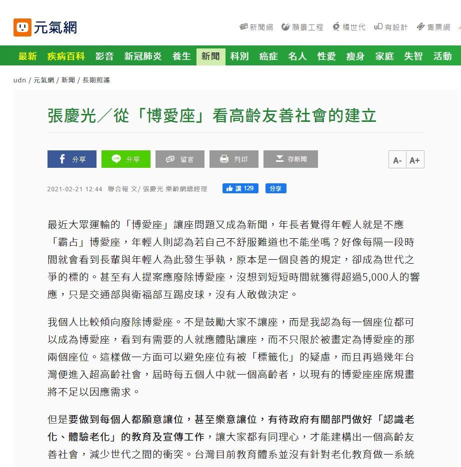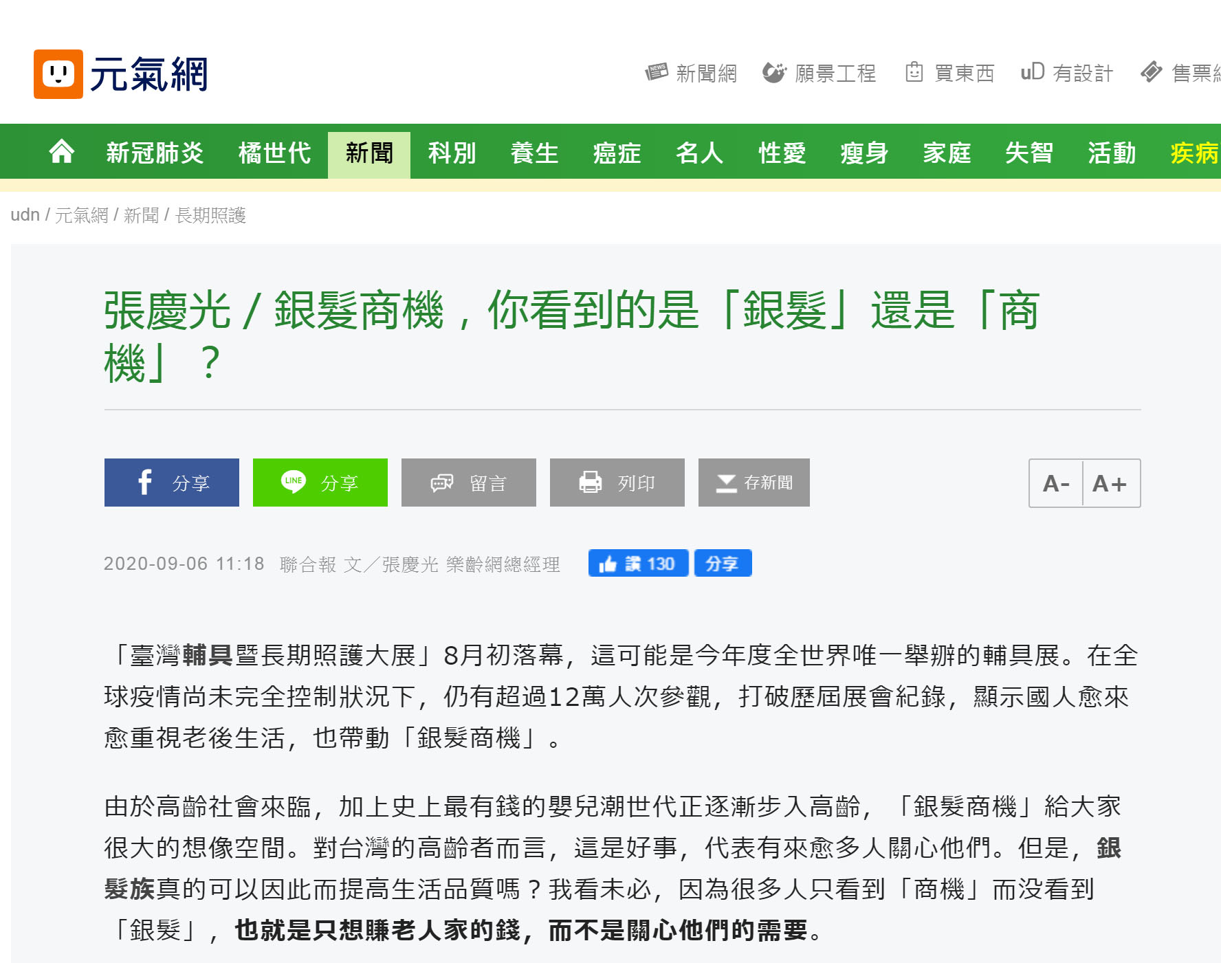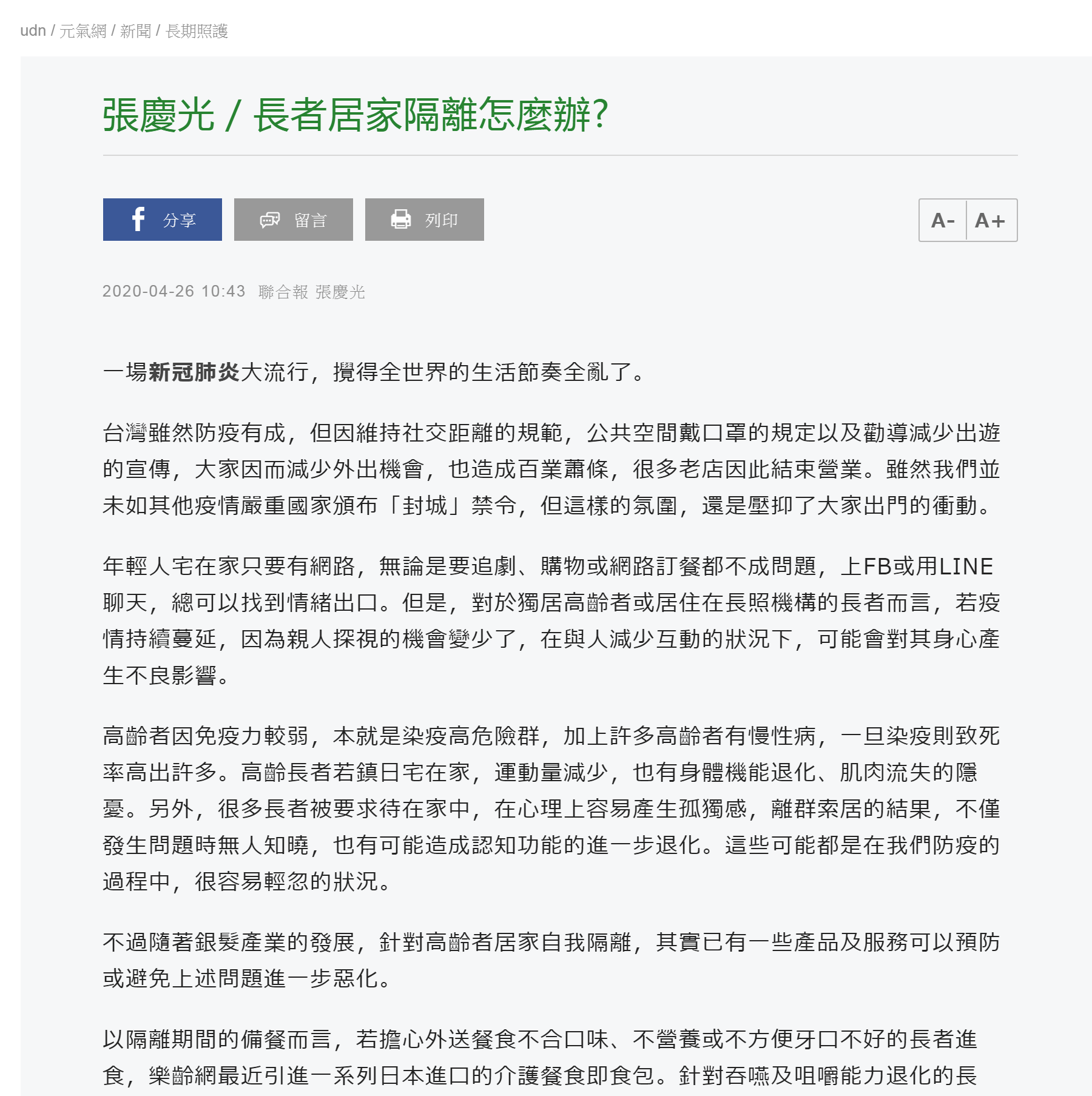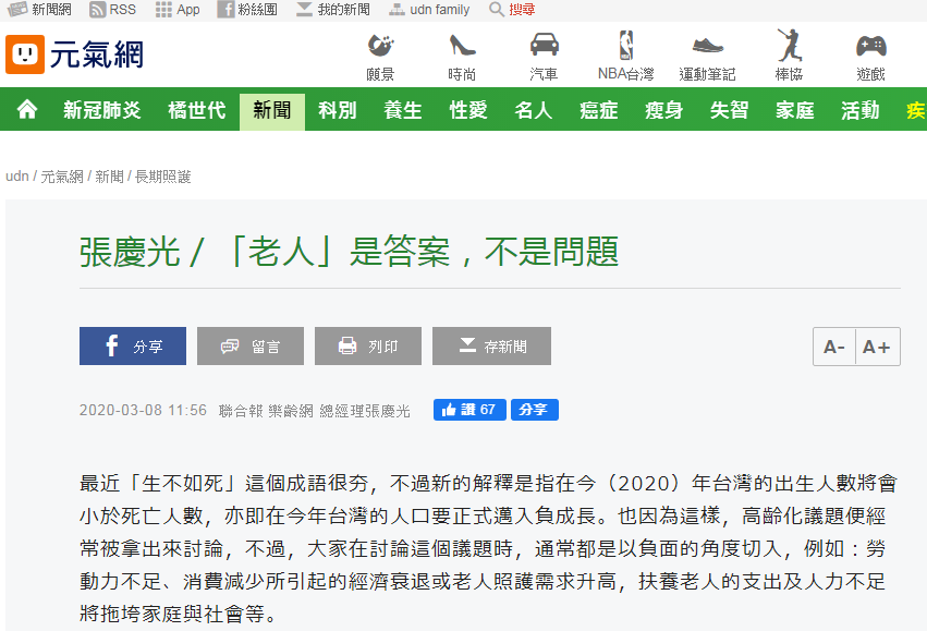 【網路】元氣網(2020/3/8) 刊登『張慶光/「老人」是答案,不是問題』看更多...