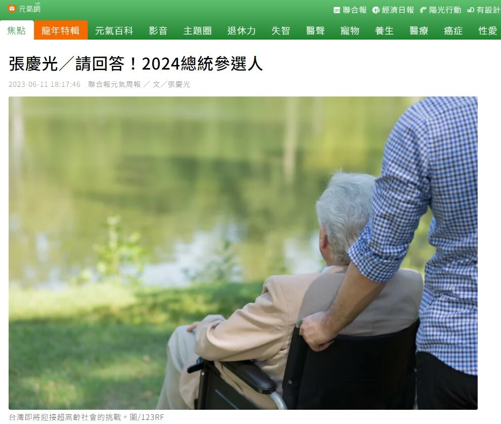 可是,2024總統當選人在他的任內將面臨一個極大的挑戰,那就是2025超高齡社會即將到來。如果此任總統未能正視此一議題,提出正確的對策解方,未來家庭、社會、經濟和公共服務系統都將因為人口老化而承受莫大的壓力。