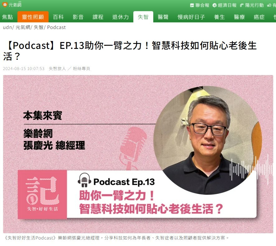 「台灣真正需要全天看護的銀髮族可能只有10%,」他解釋,「我服務的是另外90%的市場,這群人一直未被認真照顧過。」他表示,銀髮領域其實有潛在的需求,但過往沒有人站在真正為長者的實際使用情境及感受供給需求。