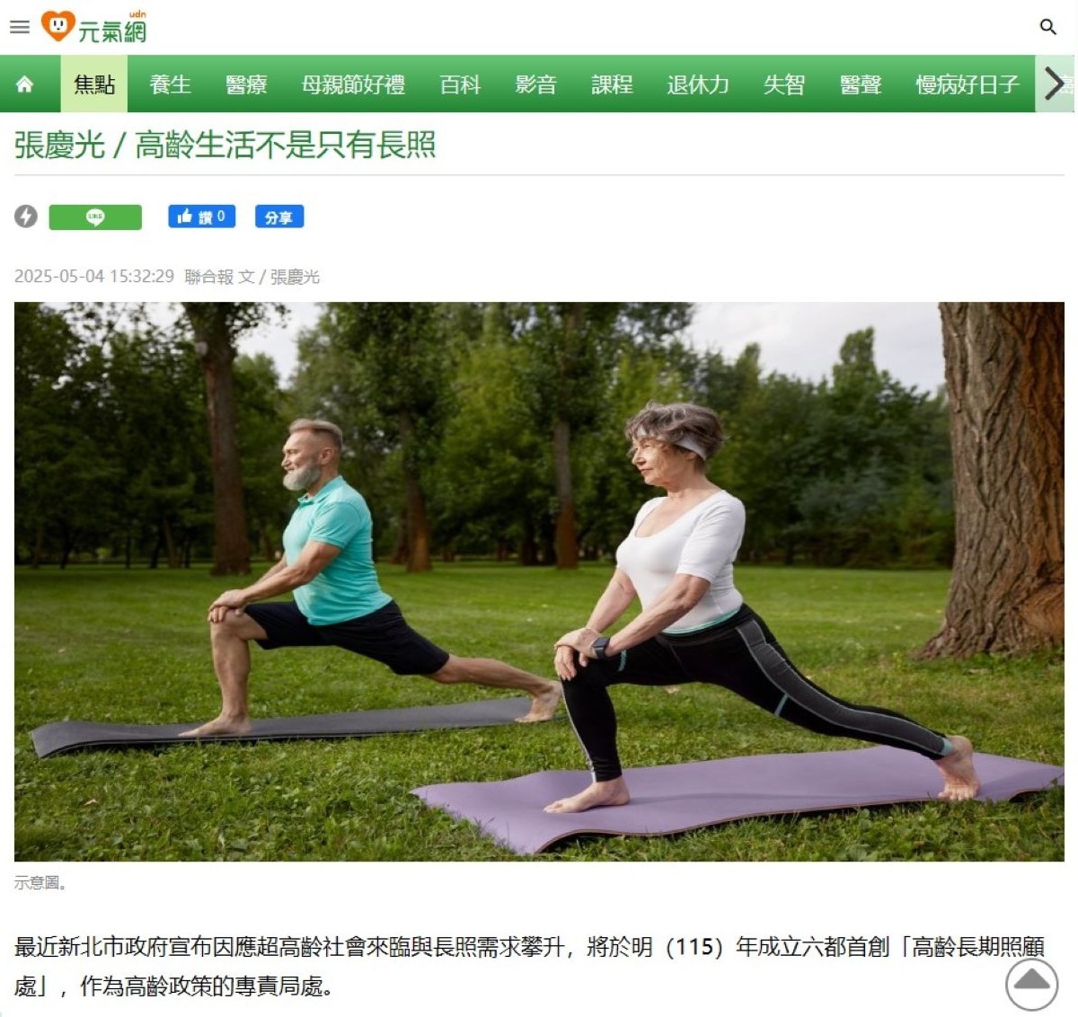 最近新北市政府宣布因應超高齡社會來臨與長照需求攀升,將於明(115)年成立六都首創「高齡長期照顧處」,作為高齡政策的專責局處。