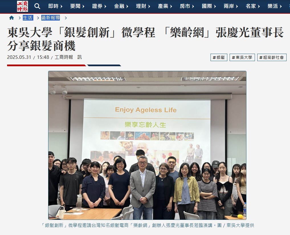 東吳大學「銀髮創新」微學程 「樂齡網」張慶光董事長分享銀髮商機