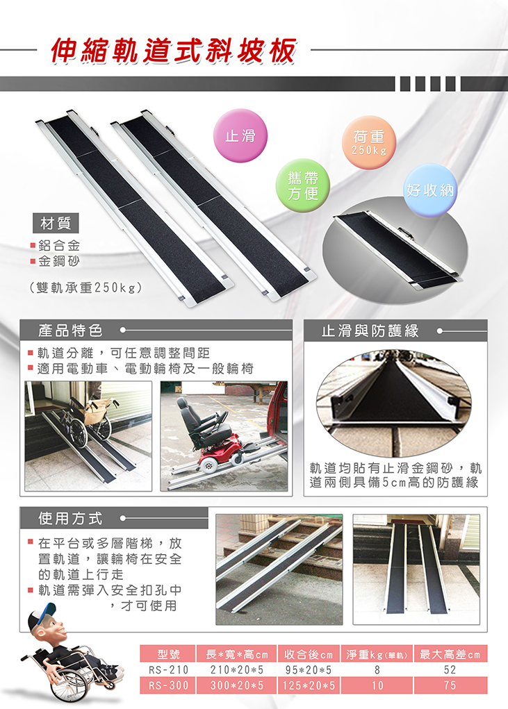 | 短 | 鋁合金 | 伸縮三節式 (一組兩片) | 210x20x5cm (單片) |
