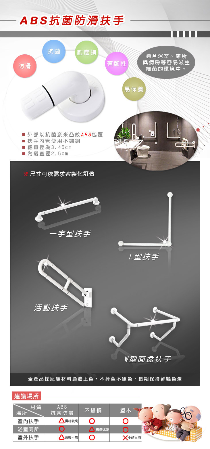 3. 請務必確保面盆左右兩側、面盆前端皆須至少留有20公分的空間,始能安裝扶手使用。