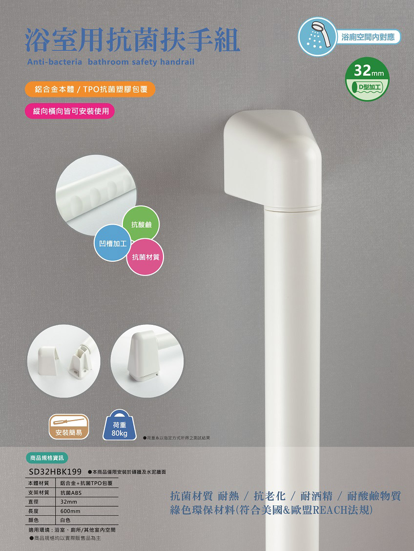 2. 扶手握把為32mm D型加工