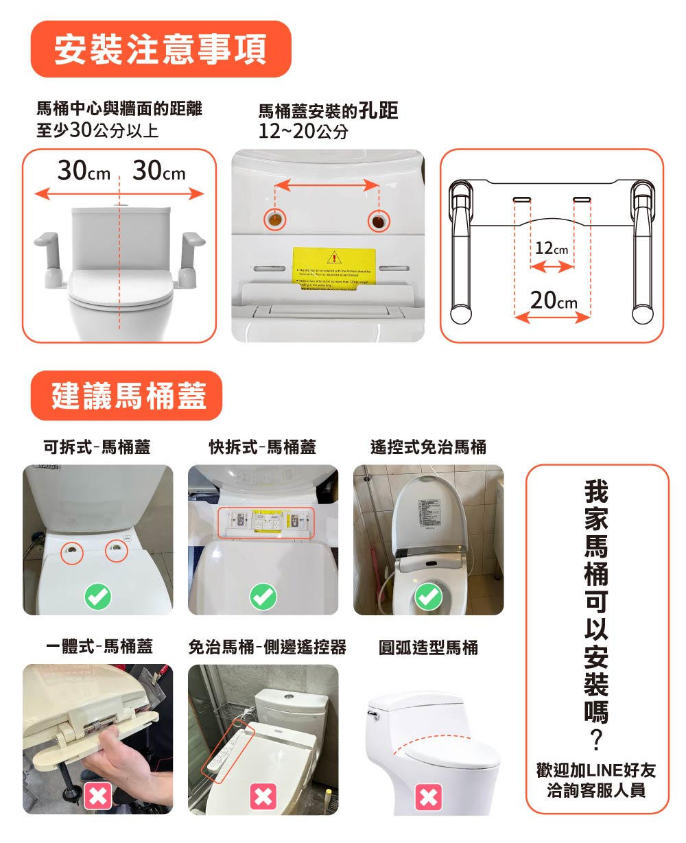 是否擔心長輩在如廁時因缺乏支撐而感到不安?【永樂屋】樂扶 馬桶扶手,免打孔設計,輕鬆DIY安裝,讓您在家也能為長輩打造安全的如廁環境。高強度鋁合金骨架,承重可達130KG,並通過SGS檢驗認證,品質值得信賴。不論是可拆式、快拆式馬桶蓋,還是遙控式免治馬桶,皆可適用。讓長輩如廁時獲得穩定安心的起身支撐,輕鬆自在。