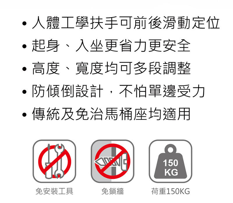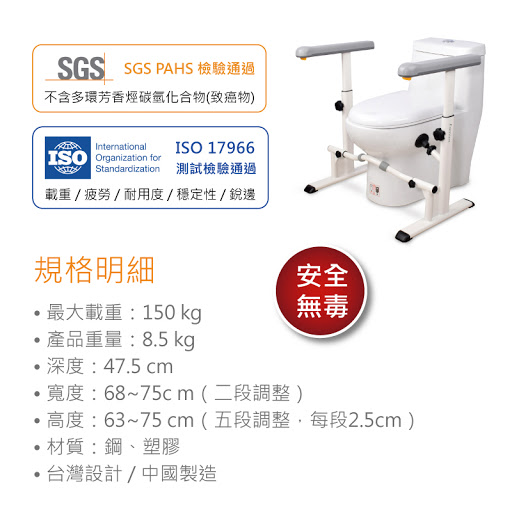 1. 此產品符合身心障礙者輔具補助項目【居家無障礙輔具 - 馬桶扶手(項次161)】