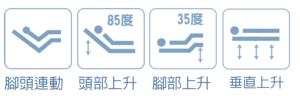 9. 頭部部分提升至85度,腳部提升至35度