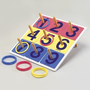2. 內容物:板子×1、數字板×9個(數字 1~9)、套棒×9支、投圈×9個、腳架棒×2支