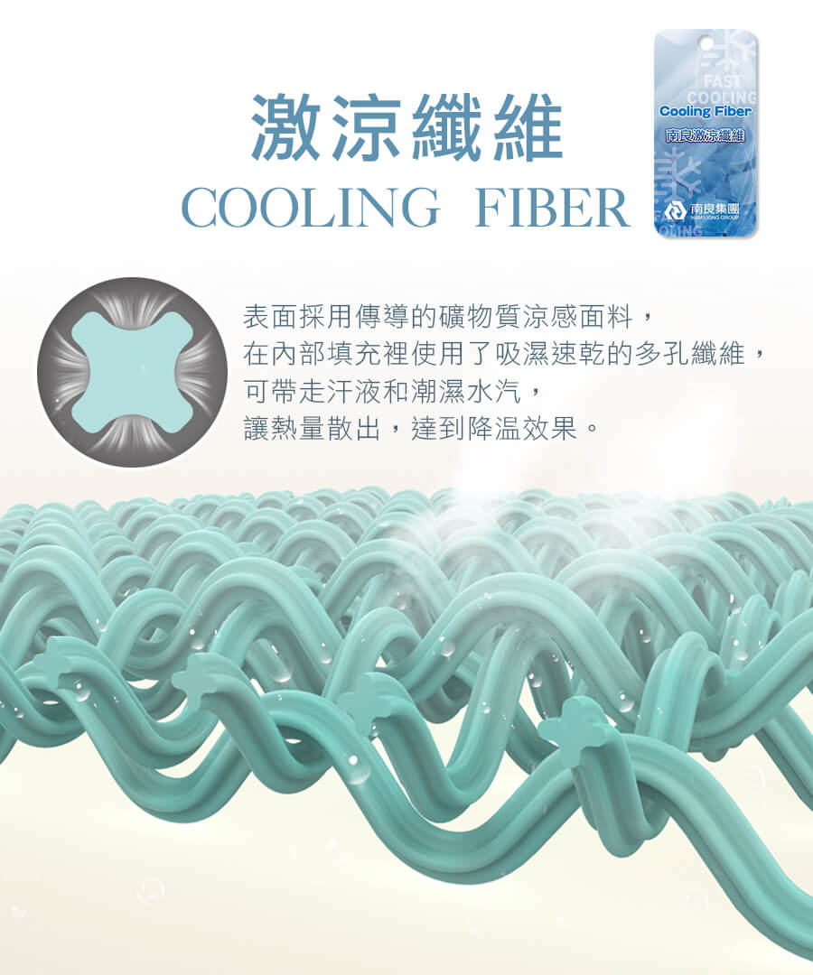 2.表面採用高傳導礦物質涼感面料,在內部填充使用吸濕快乾的多孔纖維,可帶走汗液和潮濕水氣,讓熱量散出達到散熱效果。