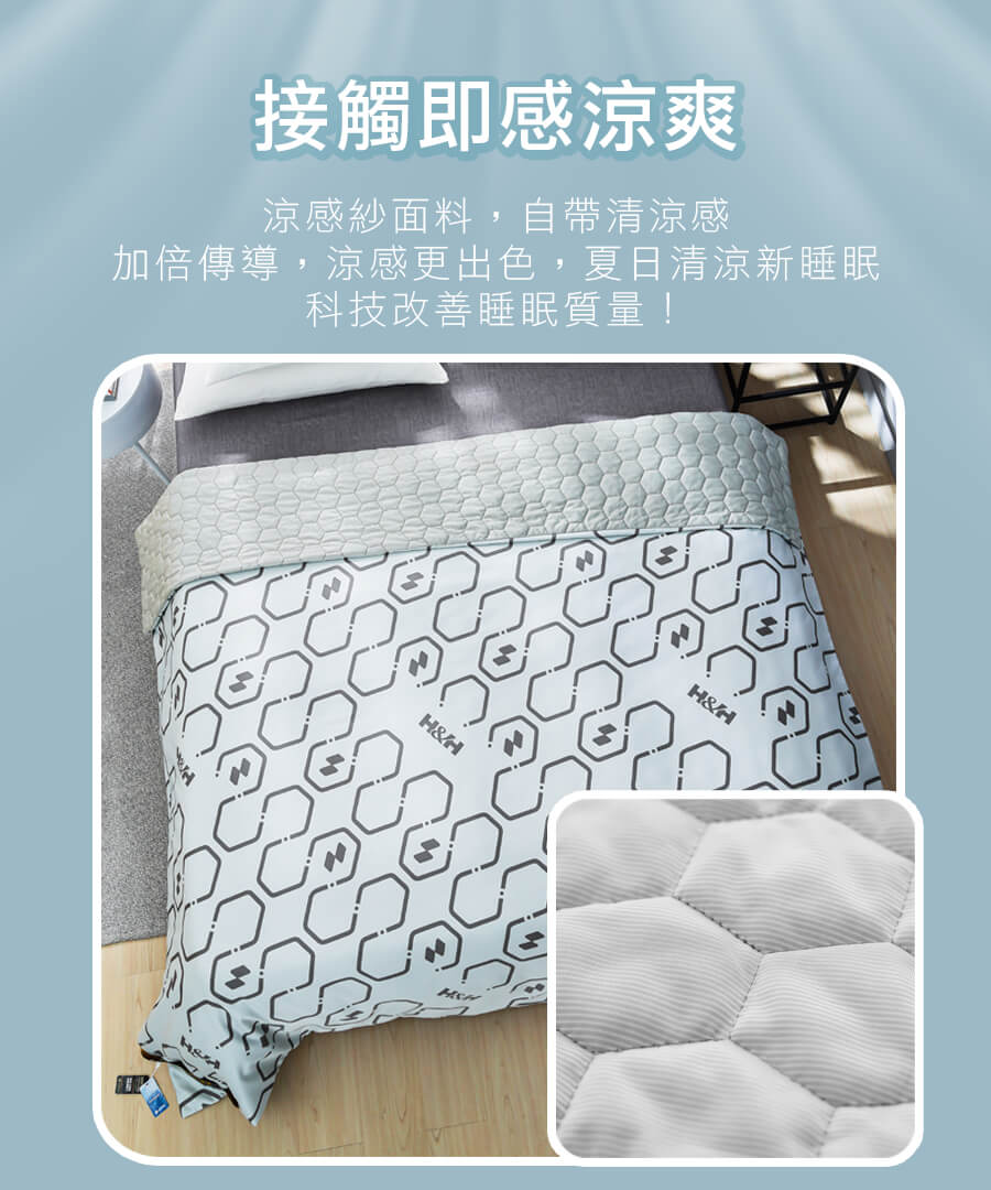 炎熱的夏天總是讓人無法安穩入眠,但是整夜吹著冷氣,對樂齡族也未必適當,而且電費又貴、又不環保。有沒有一個既可節能減碳,又可安適入眠的方法呢?【H&H 南良】石墨烯冷氣冰凍能量被,奈米石墨烯、超涼感新科技,一秒涼感高散熱,改善睡眠質量,夏日清涼睡眠新體驗!