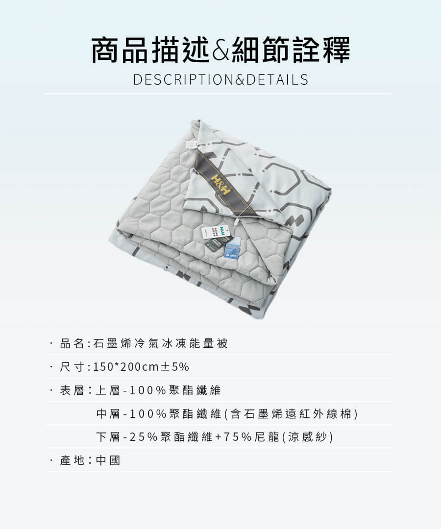 【H&H 南良】石墨烯冷氣冰凍能量被 150×200cm【B1BS5126GRA0000】好像披著一台冷氣艙,走到哪涼到哪