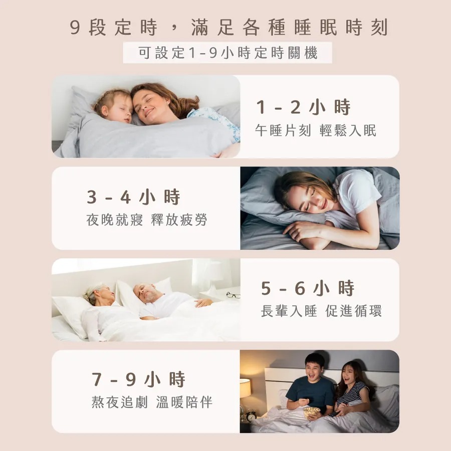 是否發現長輩對溫度變化特別敏感?夜晚氣溫稍微冷一點就睡不好?推薦【KINYO】EB-220 雙人溫控電熱毯 (無紡布),提供溫暖的呵護。配備自動斷電功能,讓您使用更安心。單手一鍵開關,操作簡單便利。六檔溫控讓您隨心調節到最舒適的溫度,九段定時功能滿足不同的睡眠需求,讓長輩的每一晚都能享有溫暖與安心的睡眠體驗。