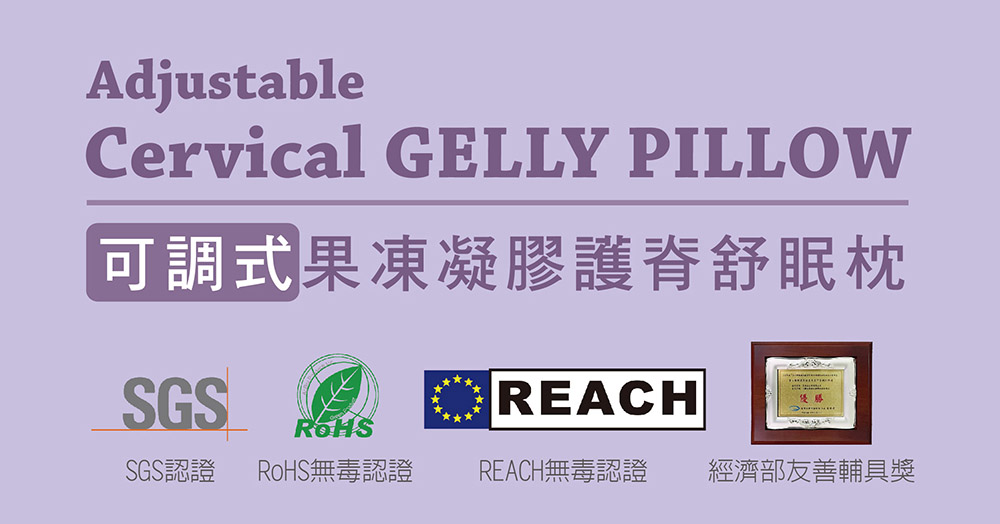 【AngelAid】天使愛 可調式果凍凝膠護脊舒眠枕 第二代,為您量身打造,擁有鑽石結構彈力凝膠,能有效減緩壓力,同時通過SGS、RoHS、REACH等多項認證,絕無毒害。獨特人體工學設計,可自由調整高度,讓您享受仰睡側睡兩用的舒適體驗。獲得經濟部友善輔具獎的肯定,為您的睡眠保駕護航。為自己的健康加一份呵護吧!