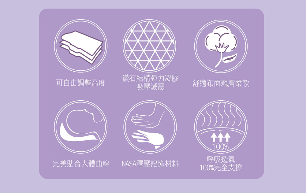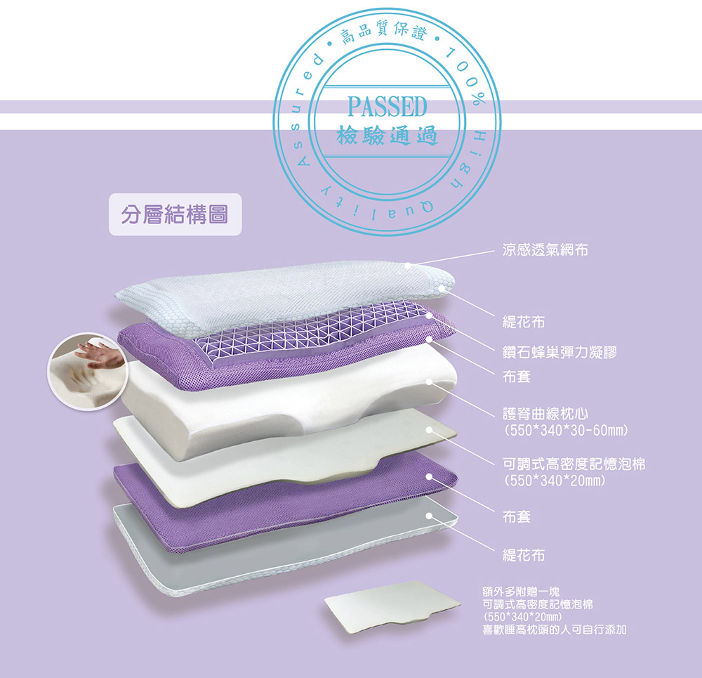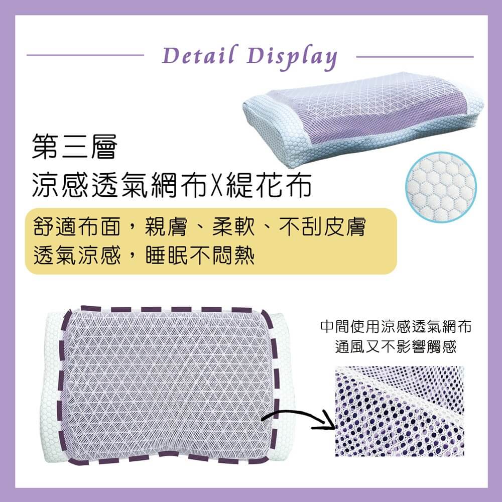 6. 材質:高密度記憶泡棉 +特殊果凍凝膠 +涼感網布(中間)+緹花布(外側)
