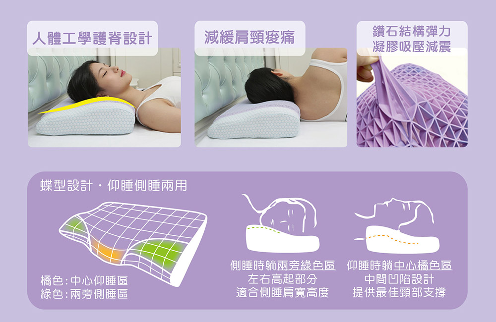【AngelAid】天使愛 可調式果凍凝膠護脊舒眠枕 第二代 - 紫【B1PL4613PUR0000】