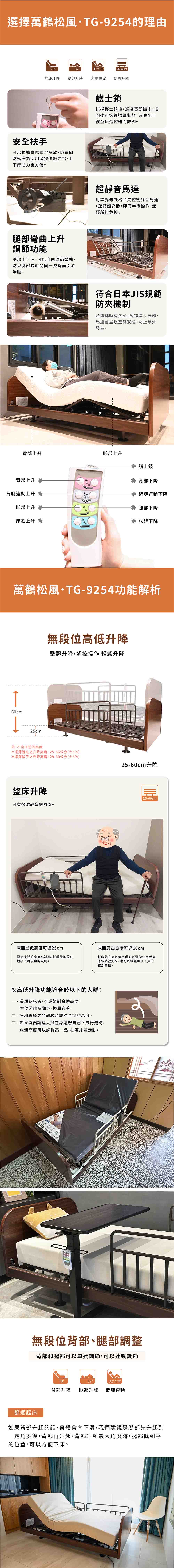 【方菩提 FunBodhi】日式三馬達電動升降床 萬鶴松風 TG-9254 (已含2支側邊安全扶手)【B2BD4113】
