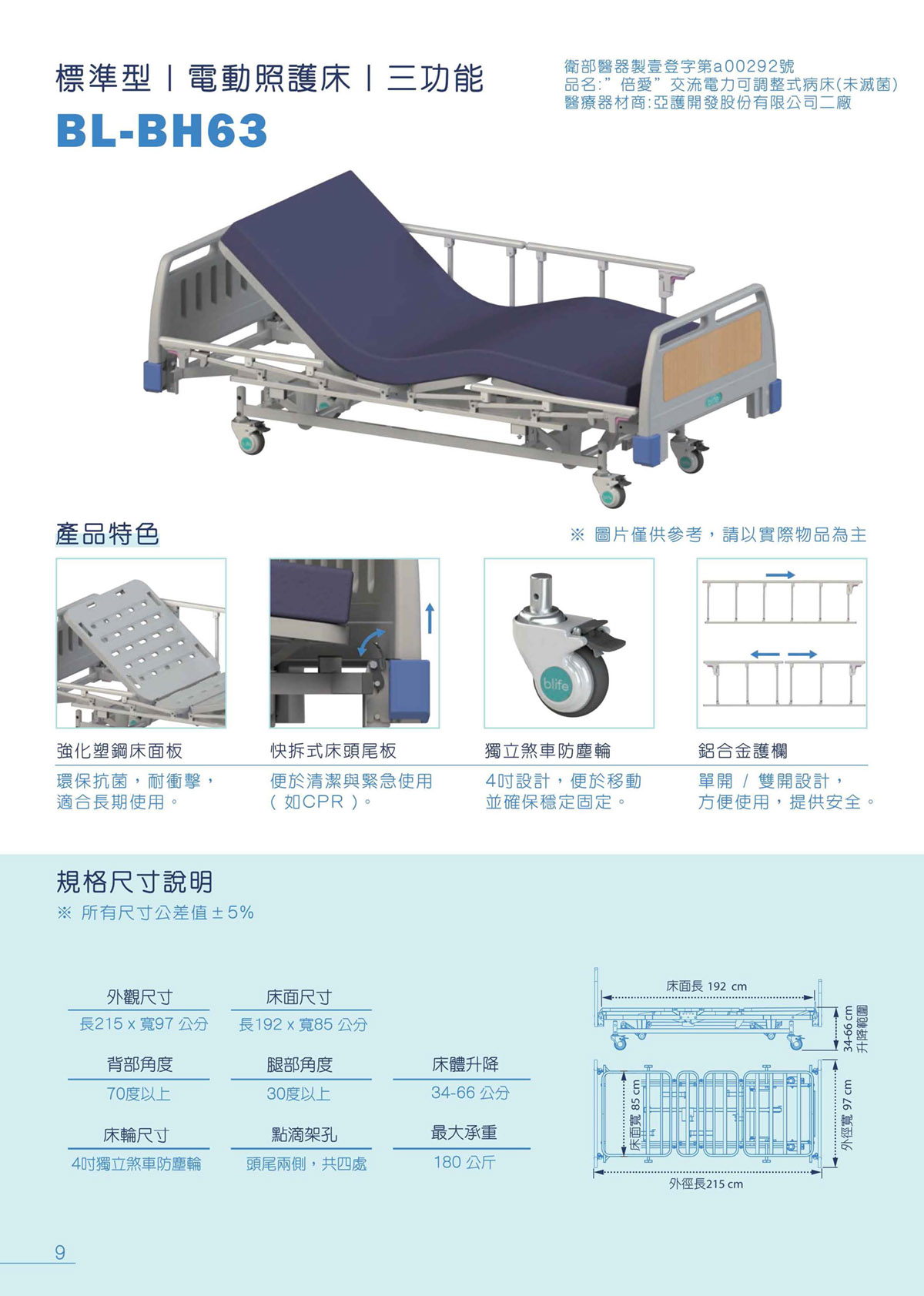 【倍愛】三馬達電動養護床 BL-BH63 標準型 - "倍愛" 交流電力可調整式病床 (未滅菌)【B2BD4128BRN0000】