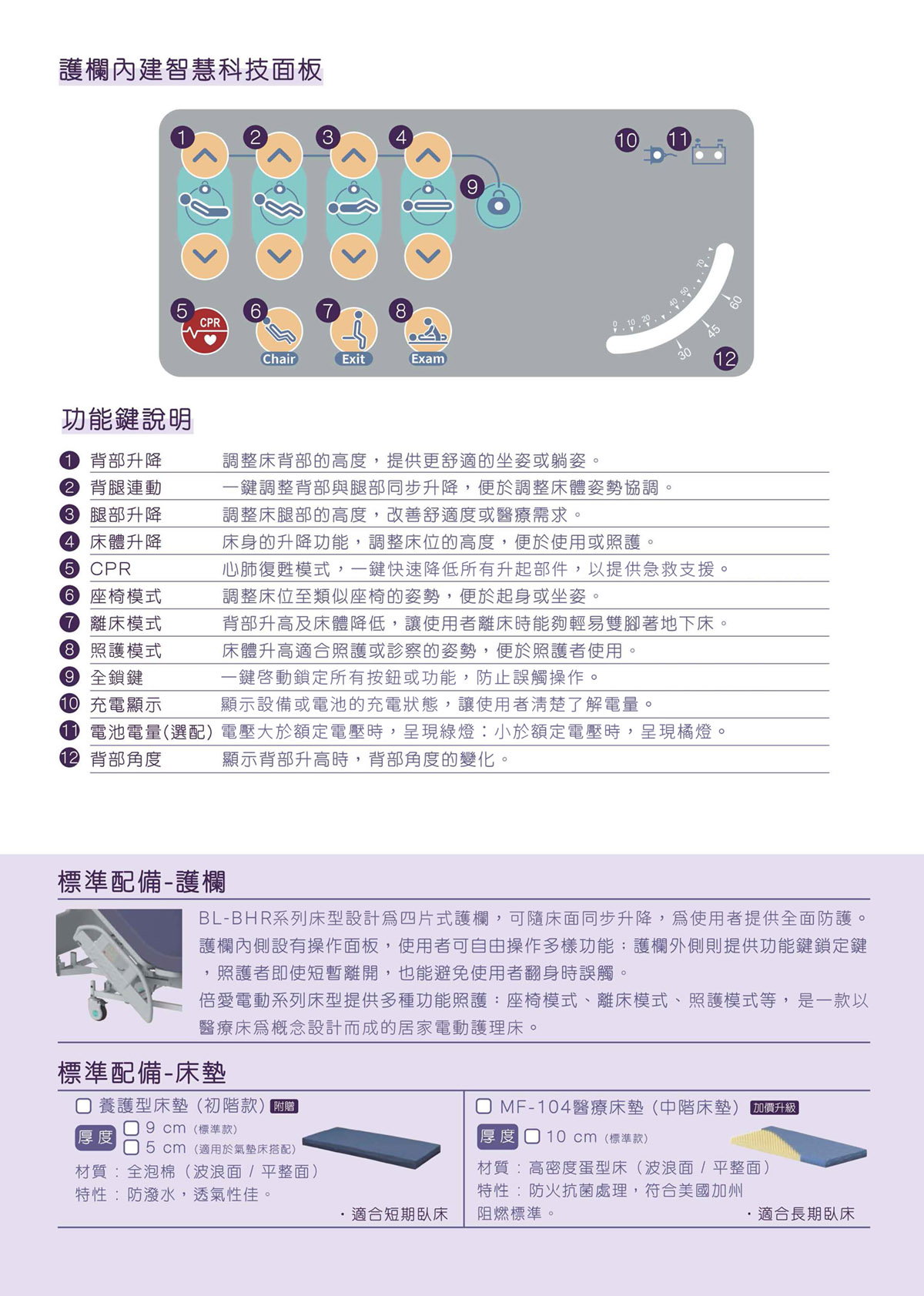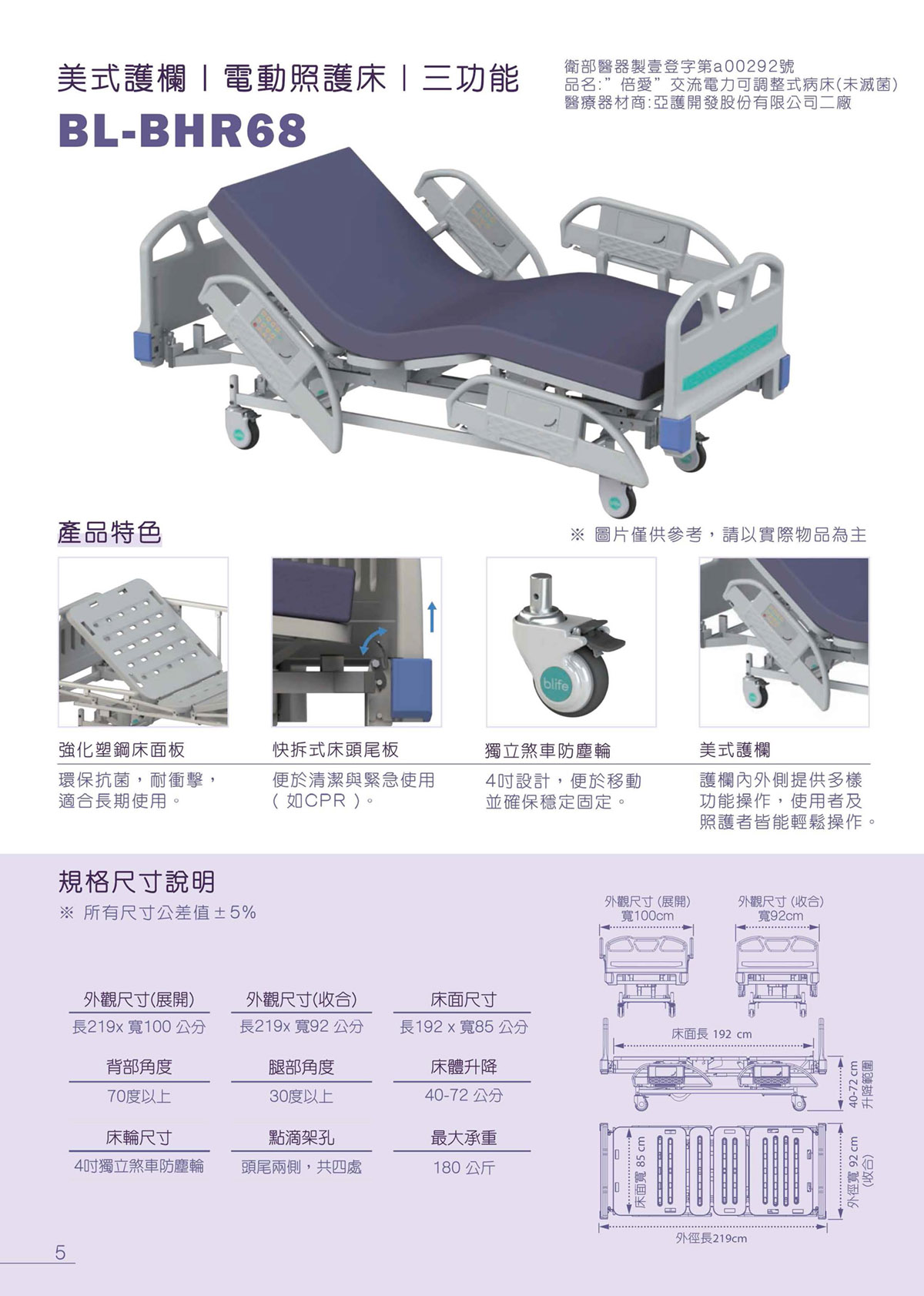 【倍愛】三馬達電動照護床 BL-BHR68 四片式護欄 - "倍愛" 交流電力可調整式病床 (未滅菌)【B2BD4131GRA0000】