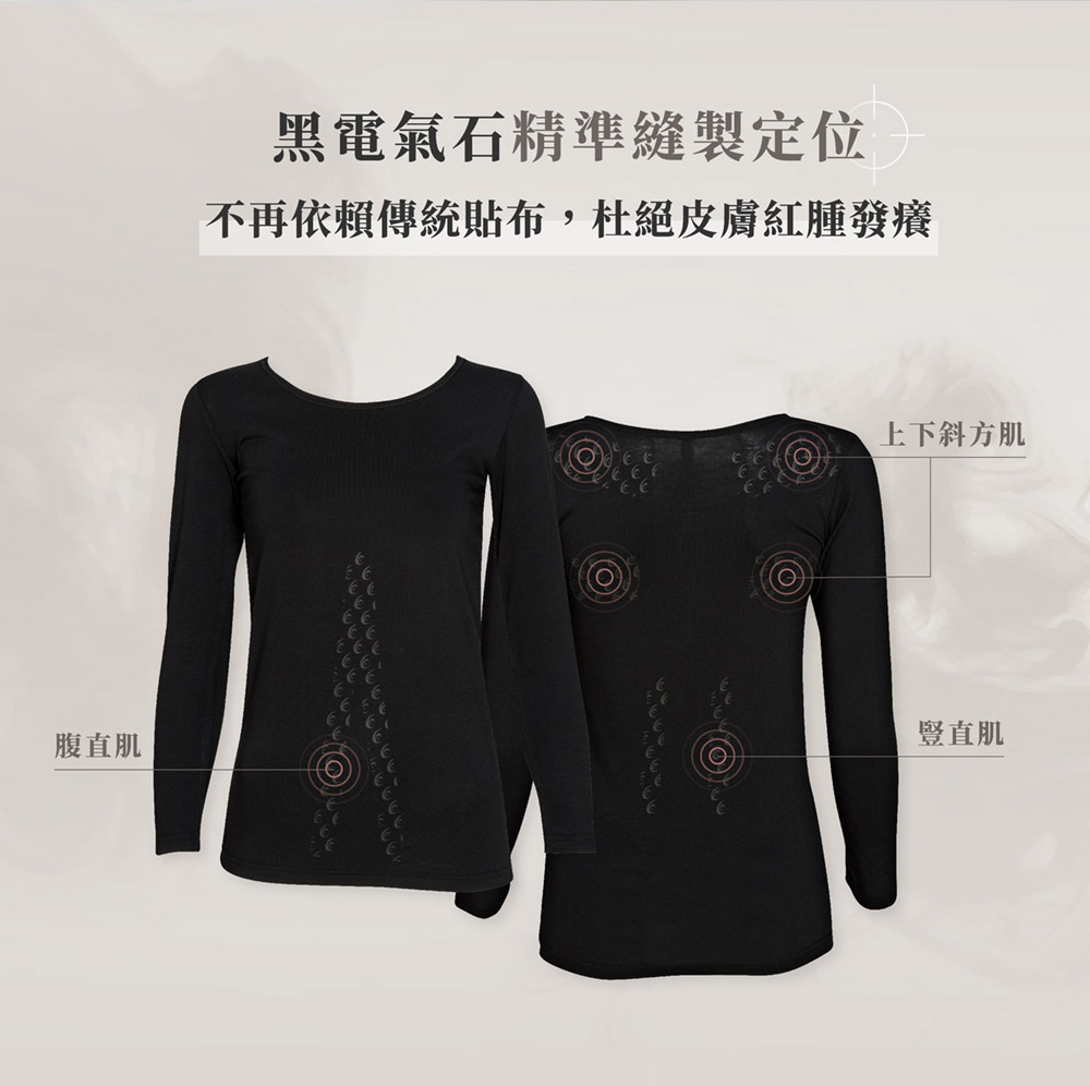 搭配專利黑電氣石印花設計,精準作用於人體結構。