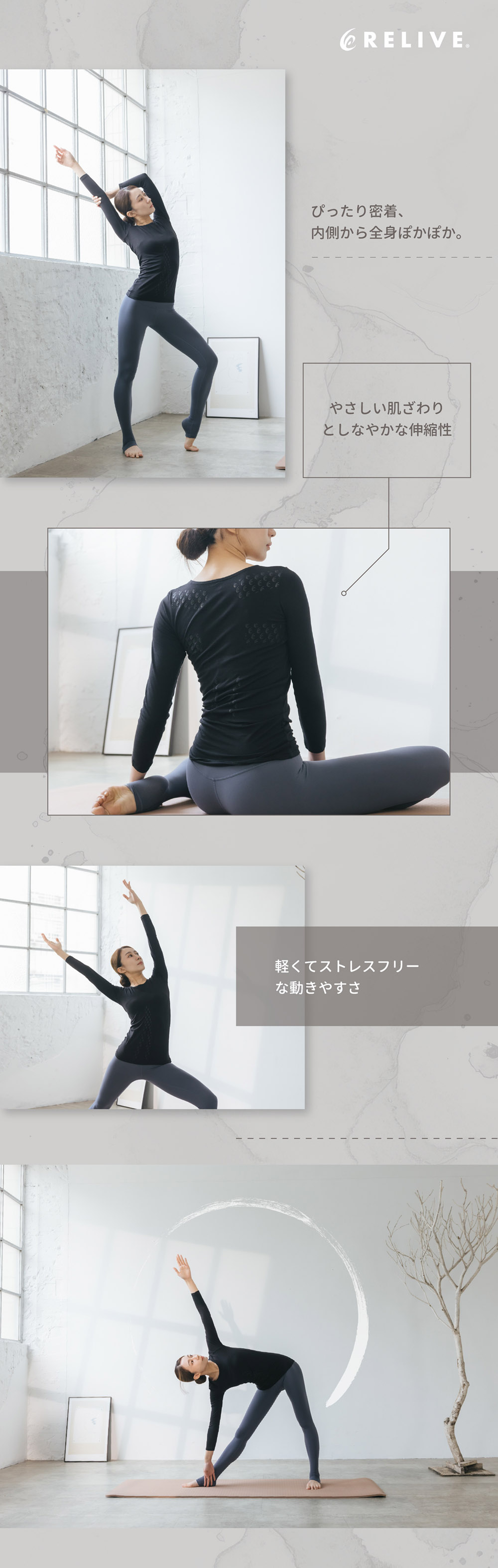 【RELIVE】黑電氣石發熱衣/褲,智慧蓄熱,讓暖意從身體核心散發出來,幫助您舒緩僵硬、驅散寒氣,即使在濕冷的冬天,也能感覺輕盈舒暢,行動更自如。