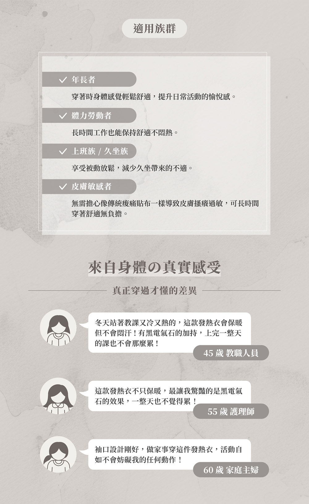🔸溫潤包覆身體核心,日常舒適更有餘裕。