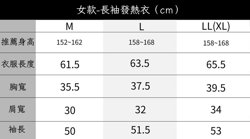 • LL(XL) - 衣長65.5cm / 袖長53cm / 胸寬39.5cm / 肩寬34cm / 適合身高158~168cm