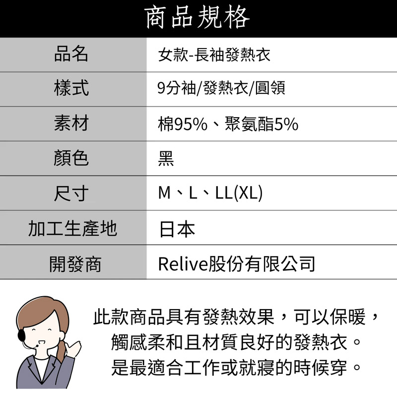 3. 樣式:9分袖 / 發熱衣 / 圓領