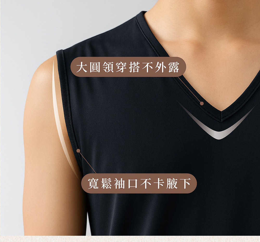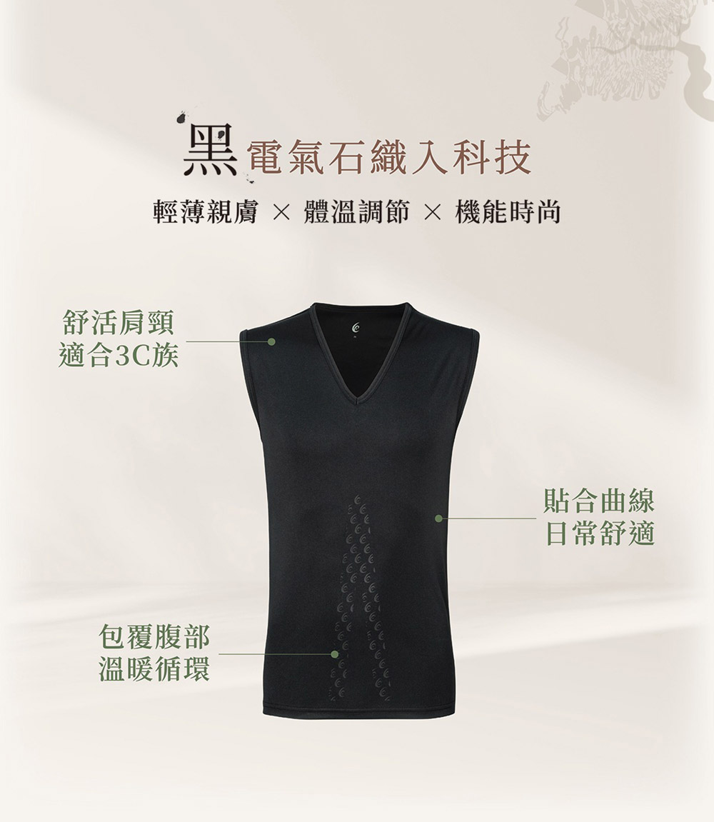 【RELIVE】黑電氣石 透氣V領內搭背心 - 男款【D1ML7014】