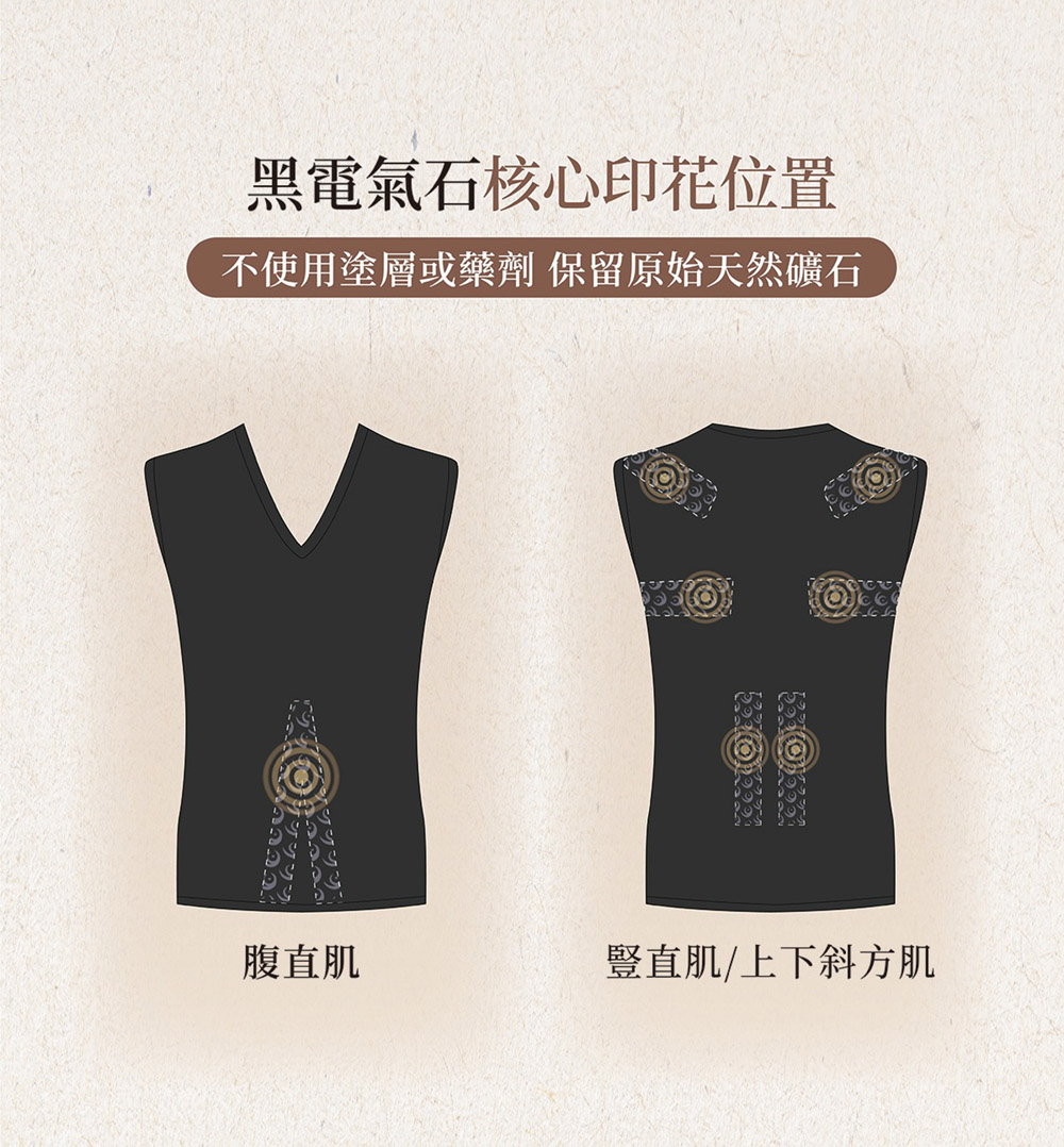 搭配專利黑電氣石印花設計,精準作用於人體結構。