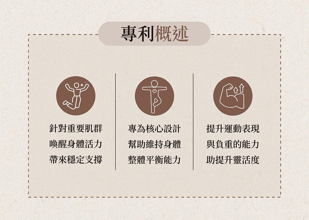 設計靈感來自日常生活的「酸痛貼布」,並精準縫製於衣物內側關鍵位置,