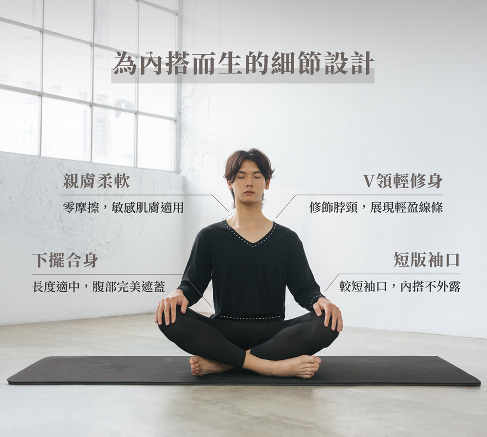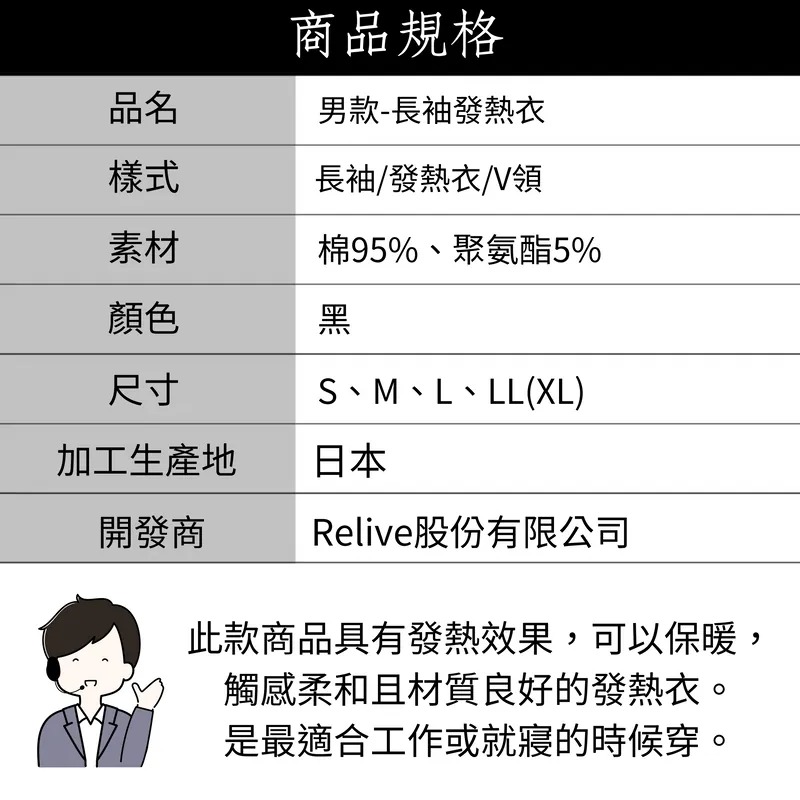 【RELIVE】黑電氣石 V領發熱衣 - 男款【D1ML7016BLK】